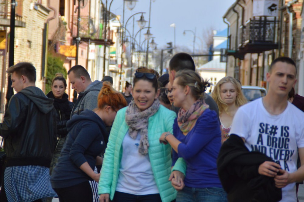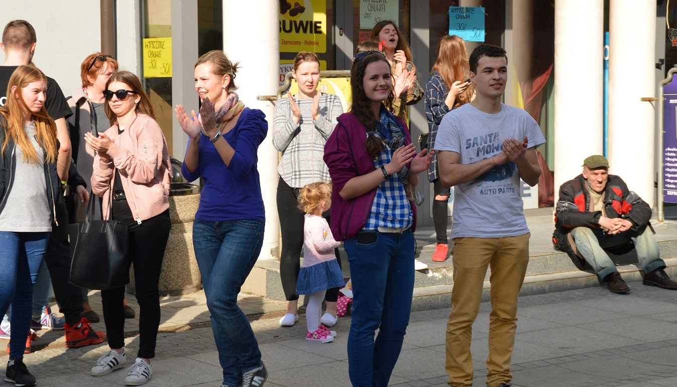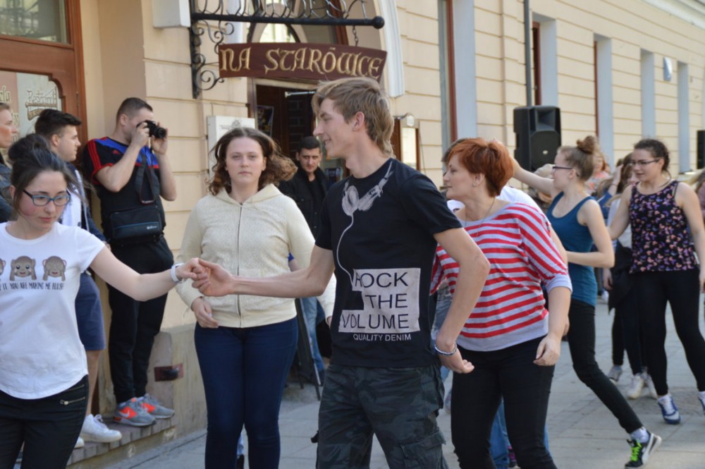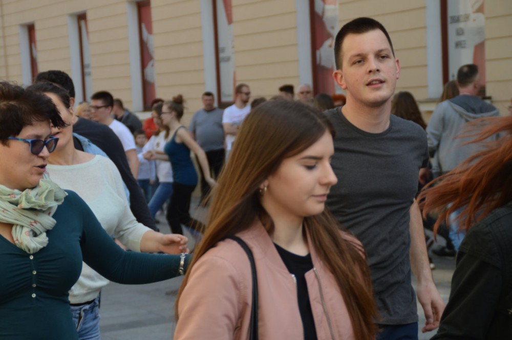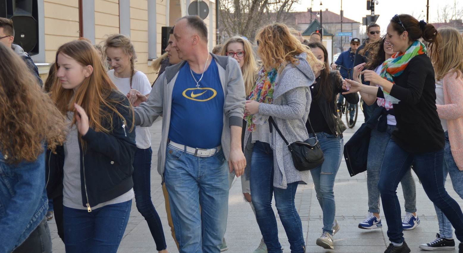 Blisko 100 osób w różnym wieku setnie zabawiło się w centrum miasta. W sobotę od godz. 15 przez kilkanaście minut tańczyło belgijkę, przebój ostatnich studniówek.