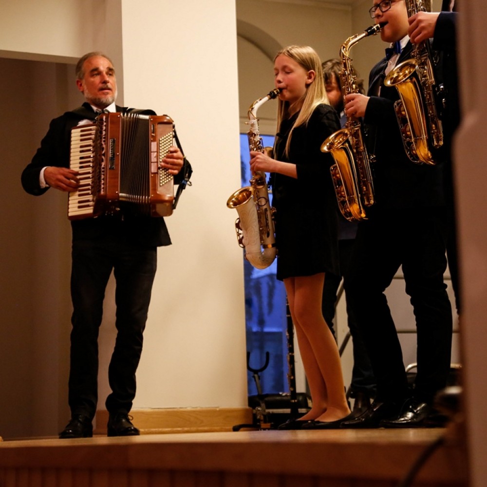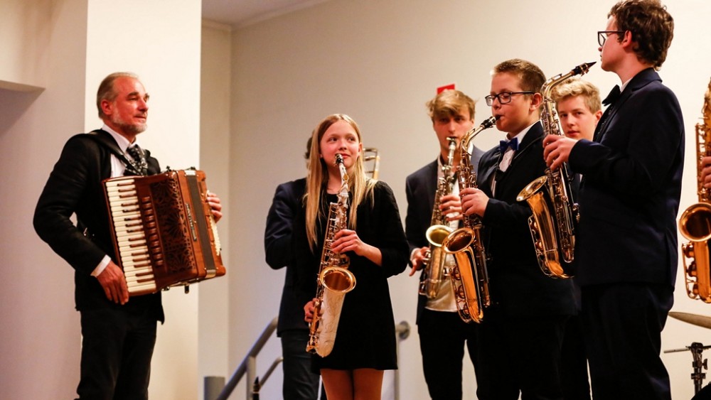 Andrzej Strumiłło, 92-letni artysta uczestniczyÅ‚ w wernisażu i filmowym pokazie historii Galerii przy KoÅ›ciuszki 45. Później obchody przeniosÅ‚y siÄ™ do Sali Balowej Muzeum OkrÄ™gowego, gdzie byÅ‚ koncert Orkiestry Klezmerskiej Teatru SejneÅ„skiego, życzenia i jubileuszowy tort.