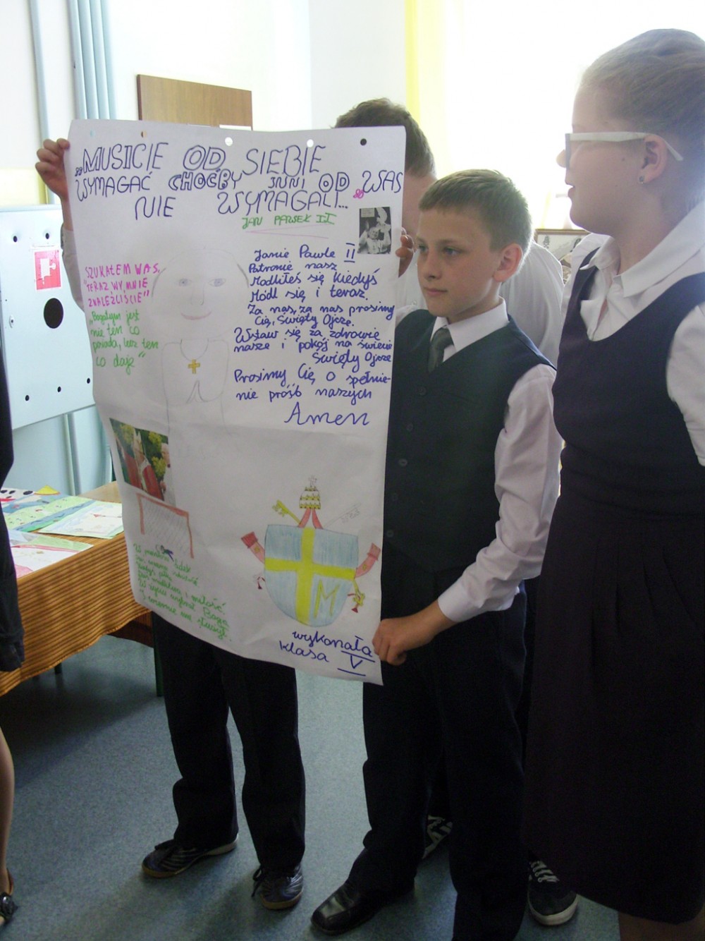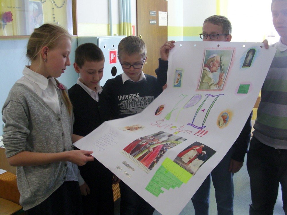 Dzieci wspólnie śpiewały pieśni, które lubił Jan Paweł II, tworzyły plakat związany z postacią Karola Wojtyły, redagowały własne modlitwy do papieża oraz wzięły udział w konkursach zorganizowanych specjalnie z okazji kanonizacji.