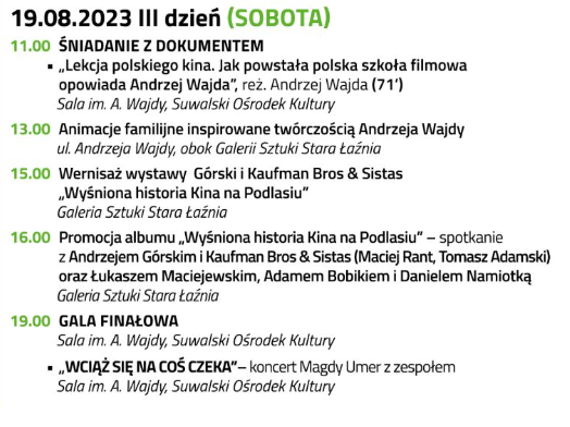 Rozmowy, wspólne zdjęcia z Krystyna Jandą i Magdą Umer miały miejsce w Kawiarence Artystycznej przy ul. Noniewicza, a zaraz potem festiwal przeniósł się do głównej siedziby SOK przy Jana Pawła II, gdzie w sali im. Andrzeja Wajdy odbyło się spotkanie z Michałem Kwiecińskim, producentem, założycielem Akson Studio, z którego pochodzi całe mnóstwo seriali, reżyserem takich filmów, jak „Biało sukienka”, „Jutro pójdziemy do kina” czy wreszcie zaprezentowany suwalskiej widowni obsypywany nagrodami „Filip”.