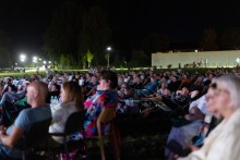Drugi festiwalowy wieczór zakończył się kinem plenerowym - projekcją "Kochanków mojj mamy" na bulwarach nad Czarna Hańczą.