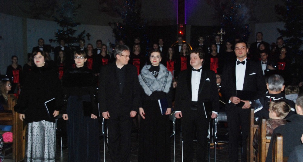 Marta Wróblewska - sopran, Aleksandra Pawluczuk - mezzosopran, Karolina Kuklińska - alt, Paweł Cichoński - tenor, Maciej Nerkowski - baryton, Małgorzata Ambrożuk - Buczek - harfa, Rafał Sulima - organy, Orkiestra Smyczkowa Państwowej Szkoły Muzycznej I i II stopnia w Suwałkach, Suwalski Chór Kameralny "Viva Musica", Cazary Gójski - koncertmistrz, Grzegorz Bogdan - dyrygent.