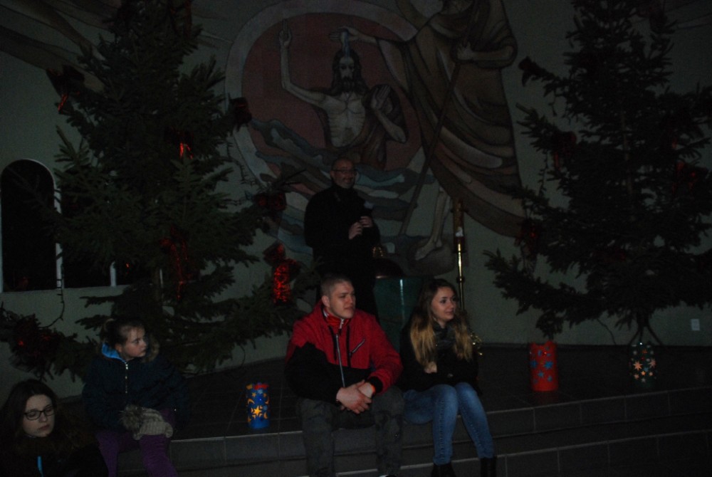 (Sopran) Nie bójcie się! Oto bowiem zwiastuje wam radość wielką, która będzie (radością) całego ludu: że narodzony jest dzisiaj Chrystus Pan, w mieście Dawida. A to znak dla was: znajdziecie dziecię w chustę owinięte i położone w żłobie.