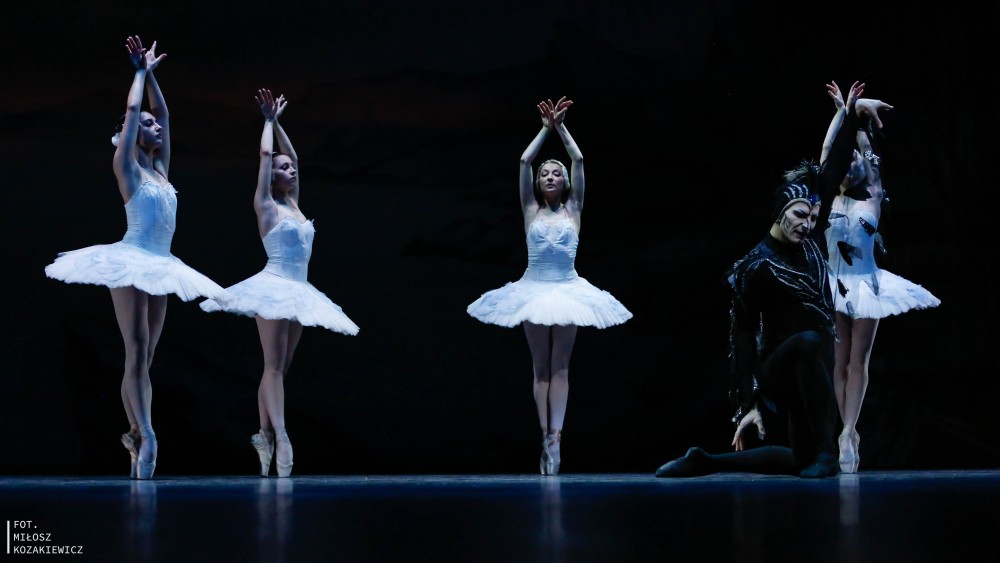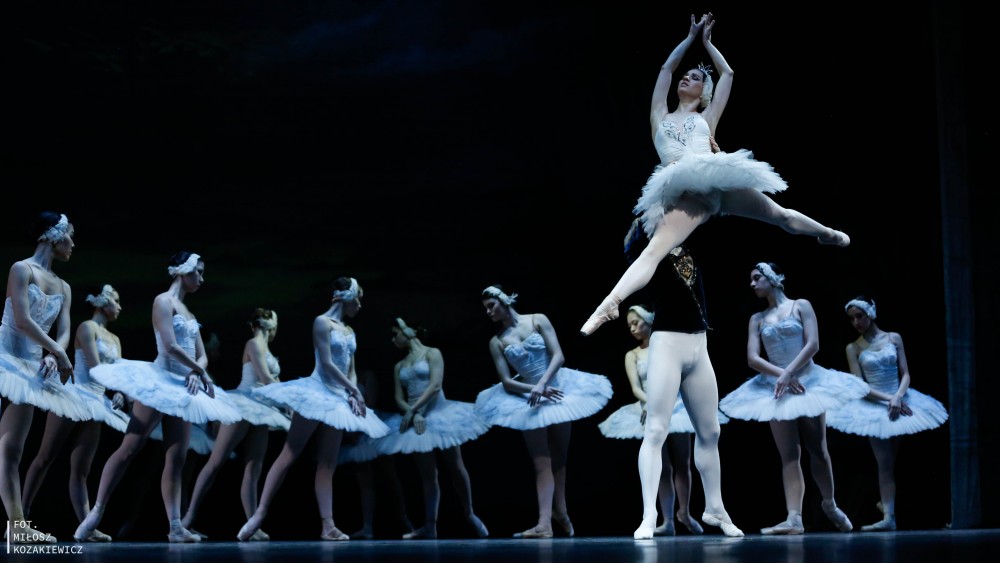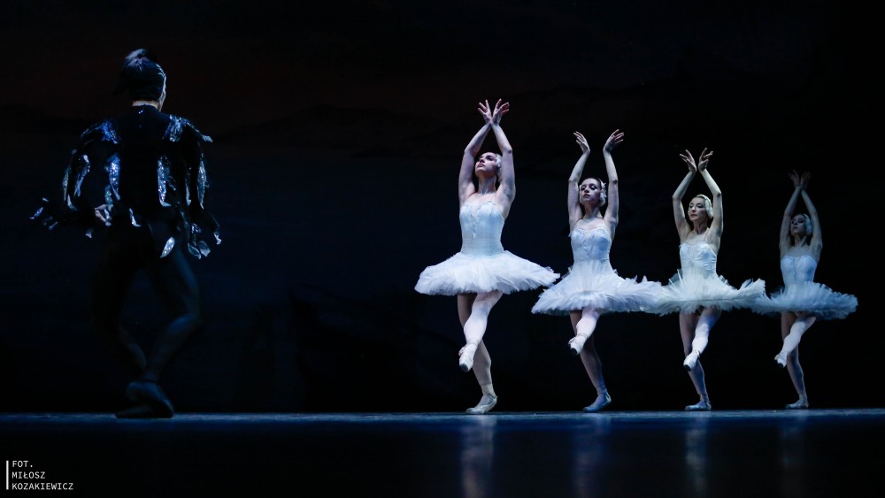 JEZIORO ŁABĘDZIE to przedstawienie uwielbiane przez polską publiczność. Jest to powieść mówiąca o walce dobra ze złem, o potędze miłości i uczuciu przekraczającym granice życia i śmierci. Sukces tego spektaklu opiera się na wspaniałej choreografii i muzyce. Prostota wątku dramatycznego i wzruszająca interpretacja miłości Odetty i Zygfryda jako symbolu potęgi uczucia, są ilustrowane niezwykle emocjonalnymi układami tanecznymi. Obrazują one przeżycia duchowe bohaterów. Czarujące walce, dumne rytmy poloneza, ognisty taniec hiszpański i pełen temperamentu czardasz hipnotyzują i wprowadzają w niezwykły nastrój. Kolejnym niewątpliwym walorem jest muzyka, która urzeka pięknem i subtelnością melodyki. Nie dzieli się na fragmenty, typowe w większości baletów muzyczne divertissement, lecz składa się na wspaniale utaneczniony poemat symfoniczny. Dzięki temu jest niezwykle "czytelny" dla każdego tancerza, a także - co najważniejsze - dla widza-słuchacza. Od pierwszego do ostatniego taktu wiąże temat w jednolitą treść. Dziewczęta zaklęte w Łabędzie, Zły Duch i uczucia przekraczające granicę życia i śmierci niezmiennie wzruszają widzów na całym świecie.