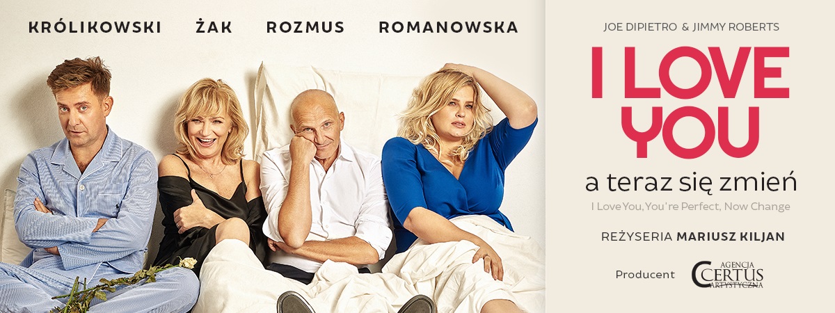 - WedÅ‚ug mnie, „I Love You” jest jeszcze lepszÄ… komediÄ… niż „Kolacja dla gÅ‚upca” – mówi JarosÅ‚aw Pietrzak z Agencji Certus. – To Å›wietne widowisko, niesÅ‚ychanie żywe, dynamiczne. Doskonale znani z telewizji, kina czy kabaretu Katarzyna Å»ak, Elżbieta Romanowska, RafaÅ‚ Królikowski i Robert Rozmus dajÄ… z siebie wszystko. W trakcie spektaklu, który z przerwÄ… trwa 2 godziny i 10 minut, przebierajÄ… siÄ™ 18 razy. Do tego Å›wietne piosenki z typowo broadway’owskÄ… muzykÄ… na żywo. Aktorom na scenie towarzyszÄ… bowiem Å›wietni muzycy.
