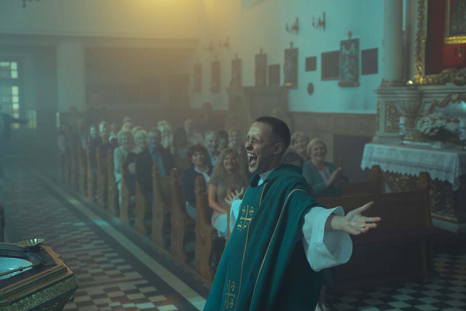 Nie znaÅ‚em reportażu, Krzysztof Rak - Å›wietny scenarzysta i producent kreatywny - przysÅ‚aÅ‚ mi scenariusz autorstwa Mateusza Pacewicza. ByÅ‚a to bardzo skromna opowieść o chÅ‚opaku, który udaje ksiÄ™dza, Å›wietnie udokumentowana - na przykÅ‚ad bardzo dobrze pokazany byÅ‚ ten zbieg okolicznoÅ›ci, który siÄ™ wydarzyÅ‚ w rzeczywistoÅ›ci, dziÄ™ki któremu chÅ‚opak bez Å›wiÄ™ceÅ„ zaczyna być ksiÄ™dzem w maÅ‚ej spoÅ‚ecznoÅ›ci w Polsce. Zdobywa zaufanie ludzi, przeprowadza w miasteczku swoisty rodzaj terapii, stara siÄ™ wyleczyć tÄ™ spoÅ‚eczność z jej traum. To mnie wciÄ…gnęło, ale miaÅ‚em dużo uwag i zaproponowaÅ‚em sporo zmian, ponieważ zależaÅ‚o mi na tym, aby scenariusz byÅ‚ jak najlepszy. Jakież byÅ‚o moje zdziwienie, gdy dwa miesiÄ…ce później przyszÅ‚a wersja z wprowadzonÄ… wiÄ™kszoÅ›ciÄ… tych uwag.