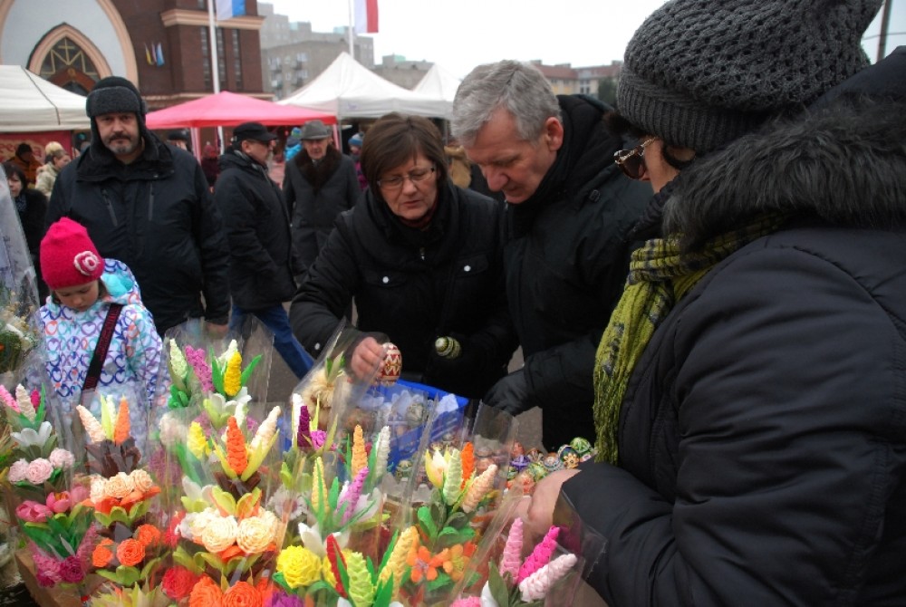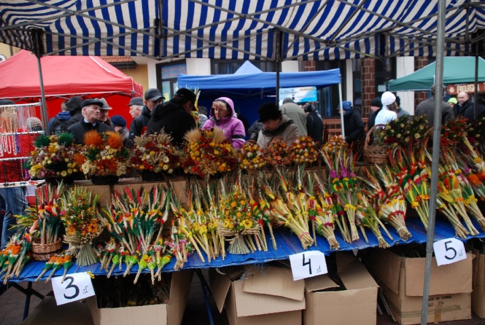Jak co roku na przykoÅ›cielny plac i sÄ…siadujÄ…ce z koÅ›cioÅ‚em ulice Å›ciÄ…gnęły steki handlujÄ…cych i tysiÄ…ce suwalczan i ich goÅ›ci. Mniej niż zwykle byÅ‚o tym razem handlowców z Litwy. Ze swoimi wyrobami byli za to polscy Tatarzy. Wilenskie palmy zastÄ…piÅ‚y te z lubelszczyny, Kurpi, spod BiaÅ‚egostoku. Nie brakowaÅ‚o malowanych jaj, koszyczków na wielkanocnÄ… Å›wÄ™conkÄ™. PachniaÅ‚o Å›wieżym chlebem i swojskimi wÄ™dlinami. Dzieci kusiÅ‚y lizaki i obwarzanki. Panie zwracaÅ‚y uwagÄ™ na „Prawdziwe polskie rajstopy”. Nie byÅ‚oby jarmarku bez ludowej muzyki, tej z pÅ‚yt i tej na żywo. KilkudziesiÄ™ciometrowa kolejka ustawiÅ‚a siÄ™ po grochówkÄ™ serwowanÄ… przez „Gams”.