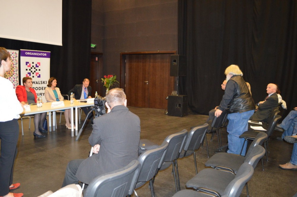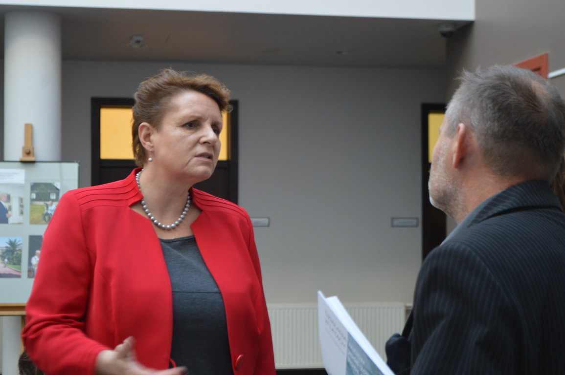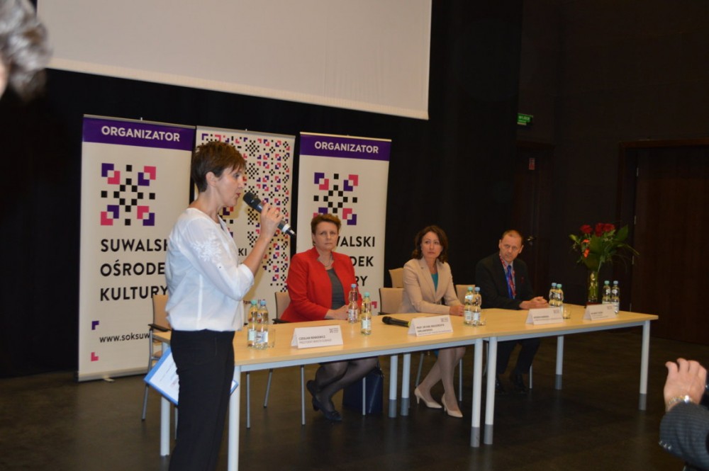 Najpierw rozmawiała z przedstawicielami suwalskiej kultury - pracownikami SOK-u, suwalskiego archiwum, biblioteki. Potem odpowiadała na pytania dziennikarzy oraz obejrzała budynek i pracownie ośrodka.