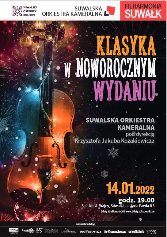 Takie właśnie dźwięki – operowe i klasyczne – popłyną ze sceny im. Andrzeja Wajdy podczas Noworocznego Koncertu Suwalskiej Orkiestry Kameralnej 14 stycznia. Orkiestrę poprowadzi jej dyrektor artystyczny, maestro Krzysztof Jakub Kozakiewicz.