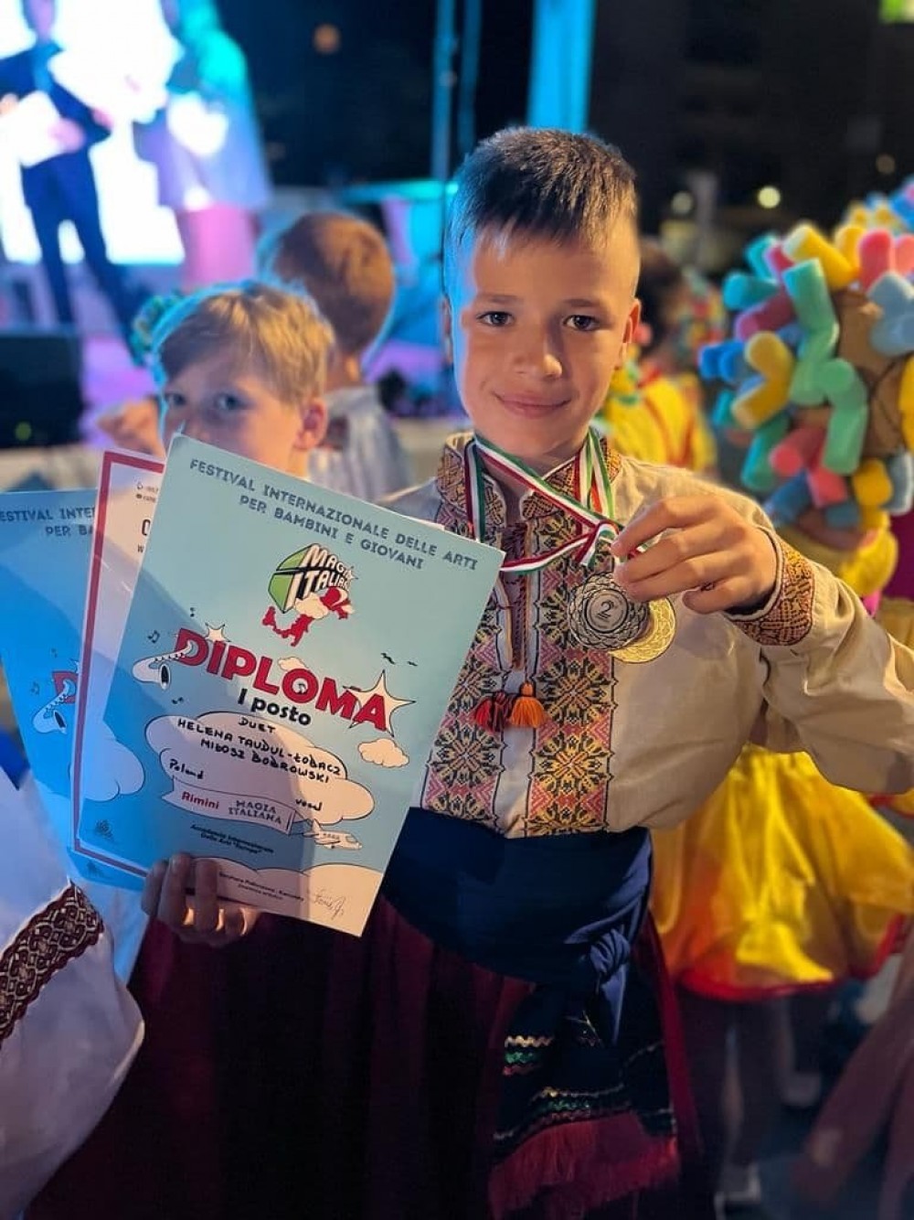 Nagrody z Włoch przywieźli również młodzi artyści ze Studia Piosenki Świetlik: I miejsce zdobyła Helena, a II miejsce Miłosz.