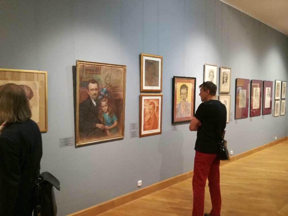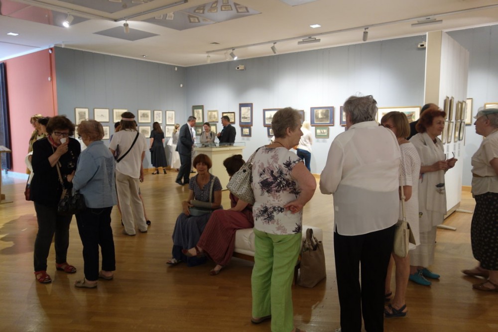 Wystawa na salach Narodowego Muzeum Sztuki w Mińsku w trakcie wernisażu.