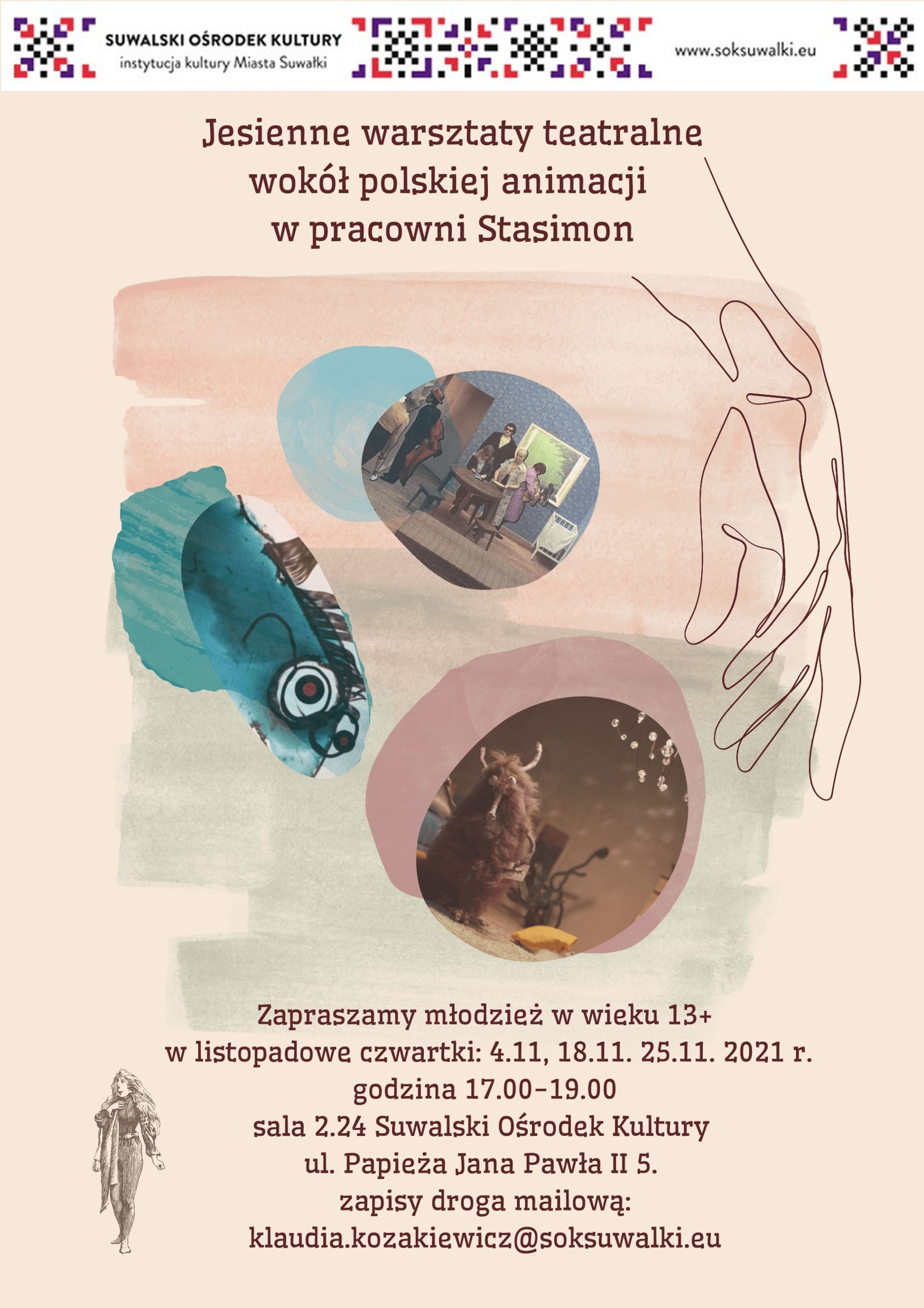 Suwalski Ośrodek Kultury zaprasza wszystkich miłośników teatru do nowej pracowni STÁSIMON! W programie m.in. warsztaty teatralne, historia teatru i kina oraz działania krążące wokół zagadnienia ciałopozytywności.