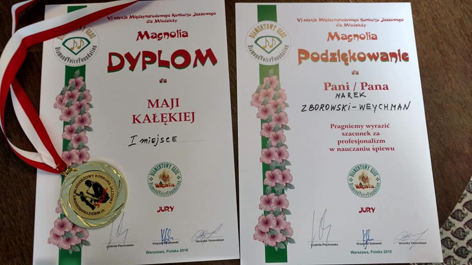 - Maja zaÅ›piewaÅ‚a w konkursie "KoÅ‚ysankÄ™ Rosemary " Krzysztofa Komedy i piosenkÄ™ z "Czarnoksiężnika z Krainy Oz". Obie piosenki, a wÅ‚aÅ›ciwie ich interpretacja w wykonaniu Mai, znalazÅ‚y uznanie u jury, obradujÄ…cemu pod przewodnictwem Krzysztofa Sadowskiego. Maja zostaÅ‚a zaproszona na koncert z okazji Nocy Muzeów, który odbyÅ‚ siÄ™ w PaÅ‚acu pod BlachÄ…, a na Gali odebraÅ‚a zÅ‚oty medal i gratulacje - informuje Marek Zborowski-Weychman, który przygotowywaÅ‚ MajÄ™ do wystÄ™pu.
