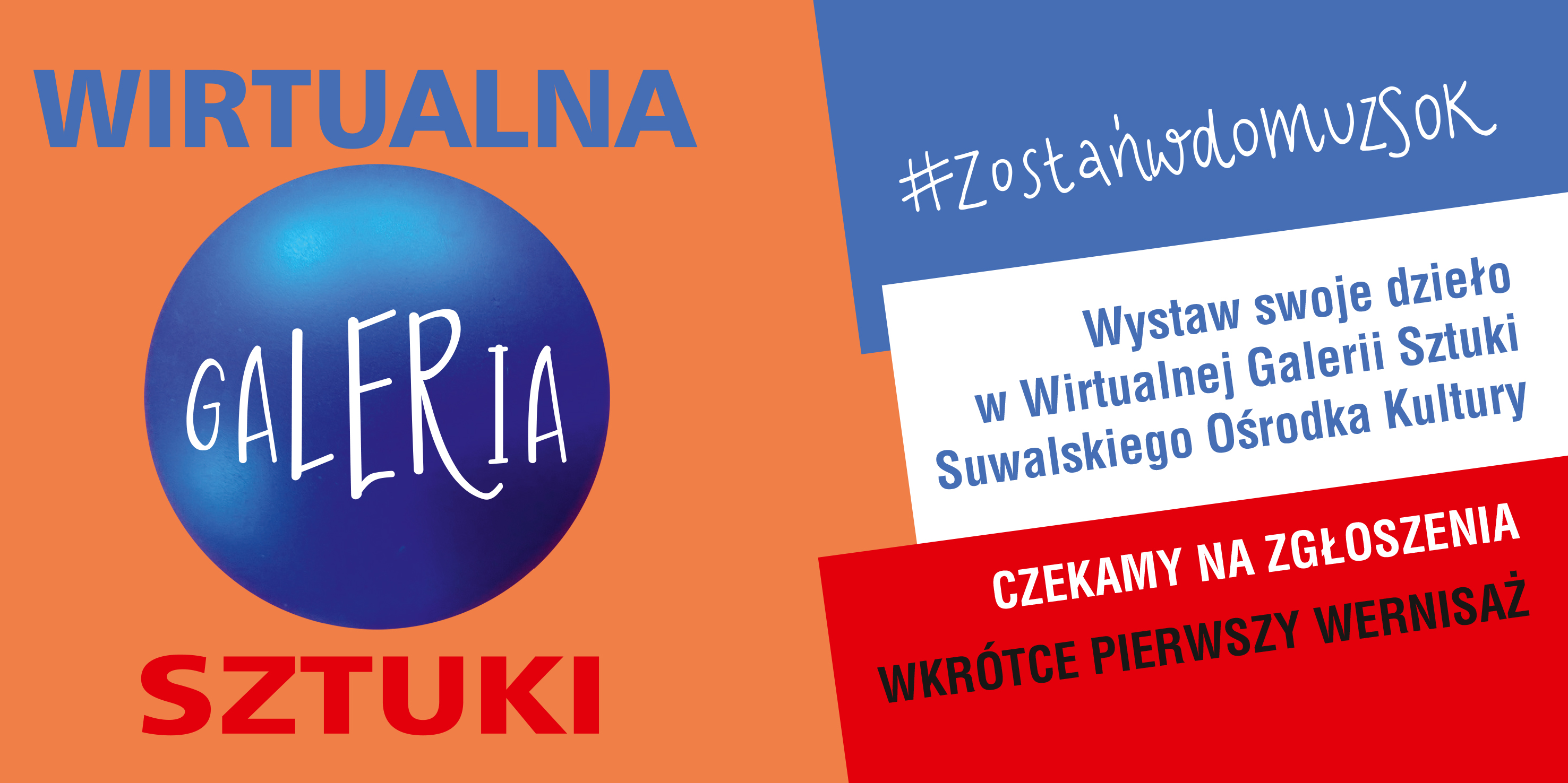 Tworzysz? Malujesz, rysujesz, rzeźbisz, filmujesz, fotografujesz, nagrywasz? Jeśli chcesz podzielić się swoją twórczością z innymi, Suwalski Ośrodek Kultury zaprasza do Wirtualnej Galerii Sztuki. Sztuką w WGS może być wszystko to, co, nawet jeśli powstało z inspiracji innym dziełem, wyzwala w nas emocje. Organizatorzy są otwarci na kreatywność, dopuszczają dowolność materiału twórczego i swobodę techniki.