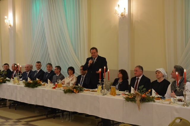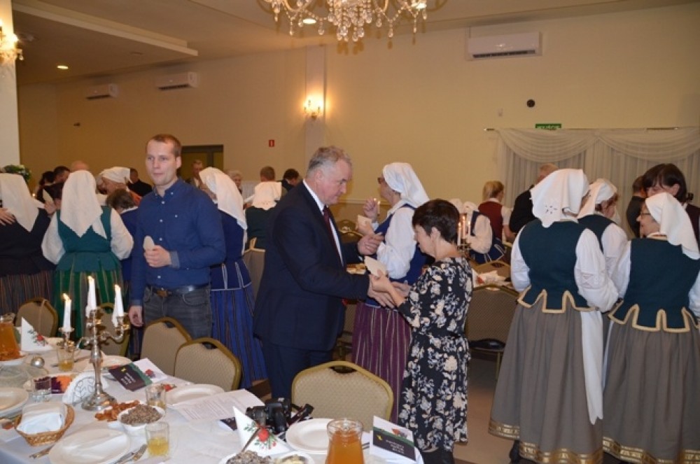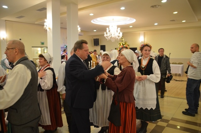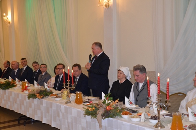 Starosta Suwalski Witold Kowalewski korzystając z okazji, iż Wigilia Chłopska to tradycyjne, niezwykle klimatyczne spotkanie z lokalnymi twórcami ludowymi, podziękował Zespołom za całoroczną współpracę, za czynne uczestnictwo w życiu kulturalnym Powiatu Suwalskiego, za wkład w ochronę dziedzictwa kulturowego naszego regionu, pielęgnowanie tradycji ludowych oraz szeroką promocję Powiatu.