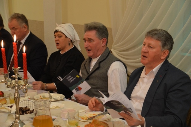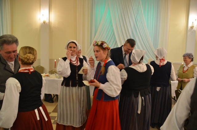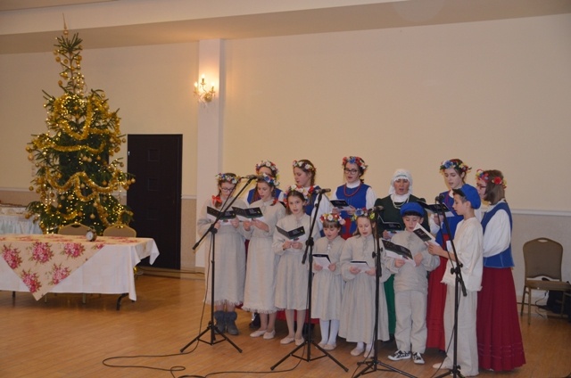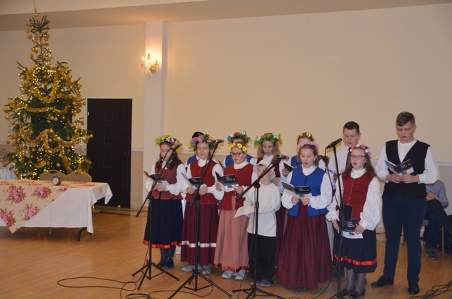 Uczestnicy Wigilii dzieląc się opłatkiem, składali sobie serdeczne życzenia świąteczno – noworoczne, a następnie wyśpiewali gromko popularne, a także dawne, często zapomniane kolędy i pastorałki.