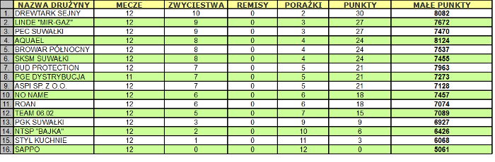 Najlepsza drużyna XII Kolejki: Browar Północny - pkt. 721
