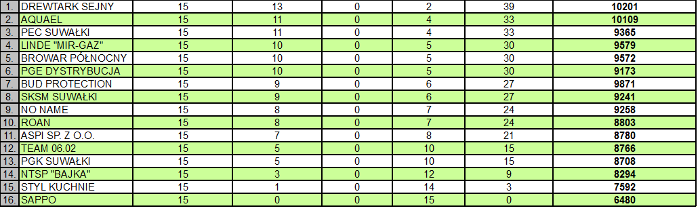 Piąta lokata przypadła Browarowi Północnemu, który pokonując Roan 731:545, został najlepszym zespołem ostatniej kolejki.