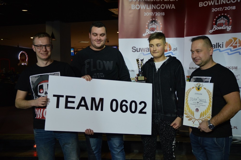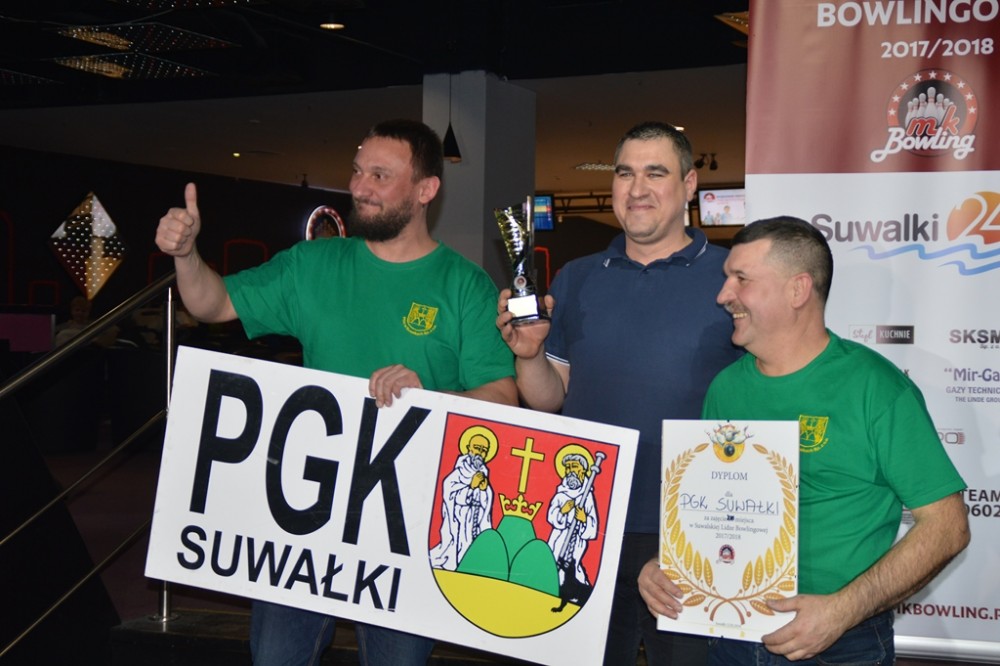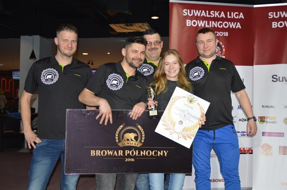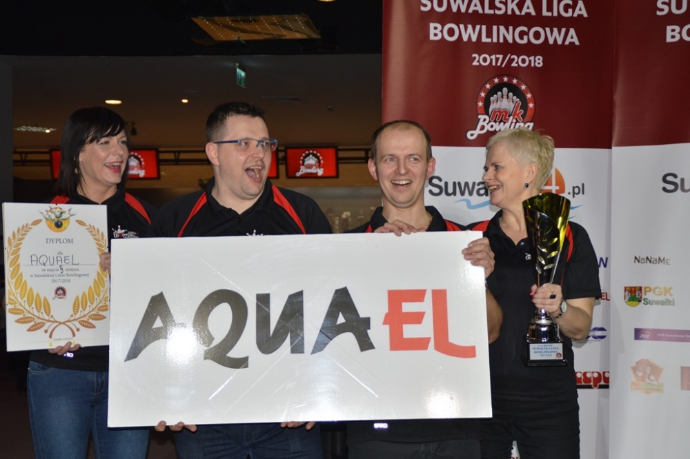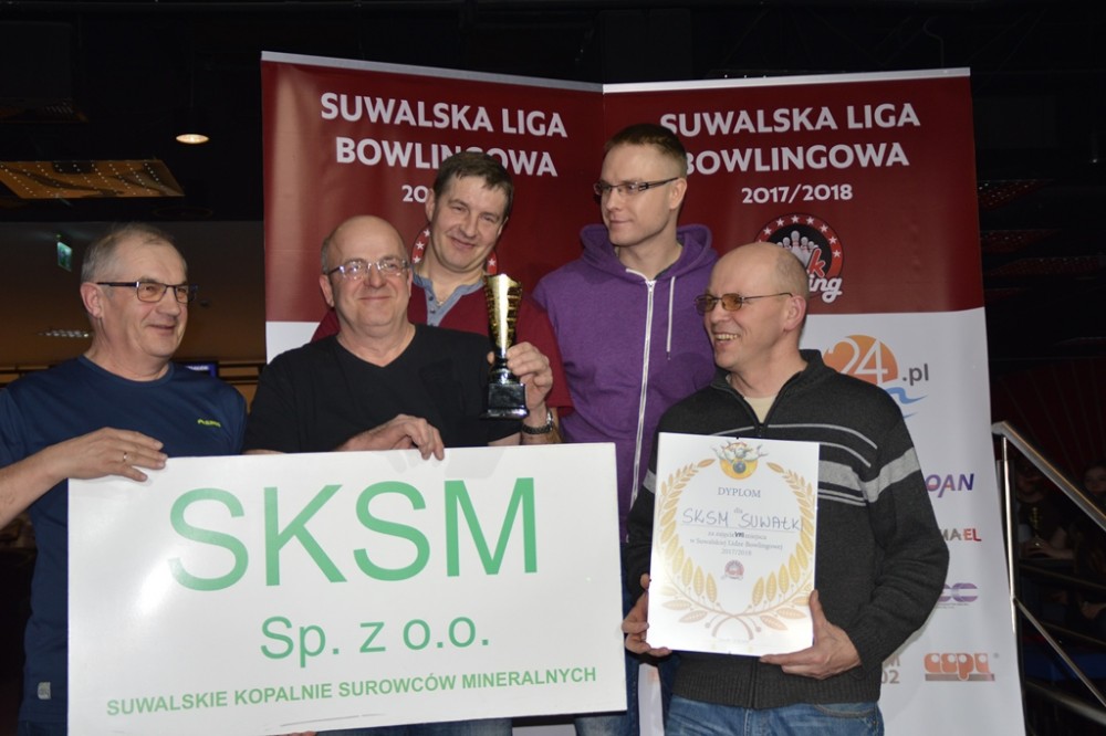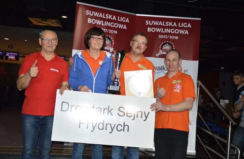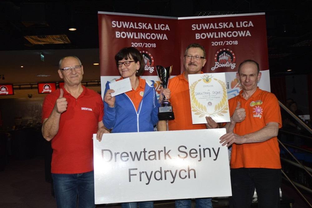 Drewtark Sejny, przed Aquaelem i PEC-em Suwałki - tak wygląda podium Suwalskiej Ligi Bowlingowej 2017/2018, rozegranej z udziałem 16 drużyn w kręgielni Centrum Rozrywki Mk Bowling. Na miano bohaterów zasłużyli wszyscy uczestnicy.