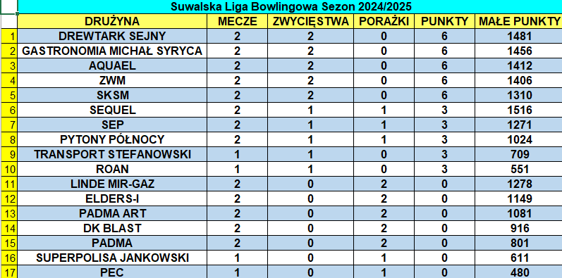 Drużyna Drewtarku Sejny obroniła pozycję lidera, którą objęła przed tygodniem, po inauguracyjnej serii spotkań. Po dwóch kolejkach, pięć zespołów ma na koncie komplet zwycięstw.
