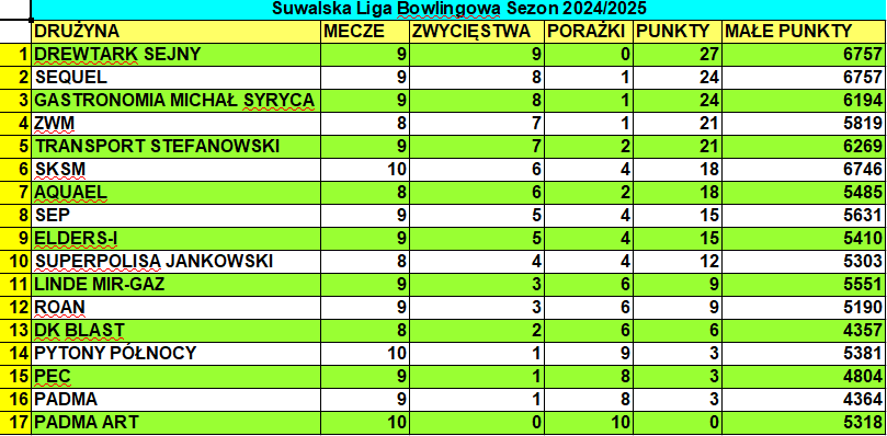 Drewtark pokonaÅ‚ ekipÄ™ SKSM 805:670 i prowadzi w tabeli z kompletem zwyciÄ™stw. Pod wzglÄ™dem liczby rzuconych punktów liderowi próbowaÅ‚y dotrzymać kroku zespoÅ‚y plasujÄ…ce siÄ™ tuż za nim. W bardzo dobrym w wykonaniu obu drużyn, wyrównanym meczu Sequel wygraÅ‚ z Superpolisa Jankowski 706:690, a Gastronomia MichaÅ‚ Syryca zwyciężyÅ‚a rozgrywajÄ…ca pierwszy sezon PadmÄ™ 709:490.