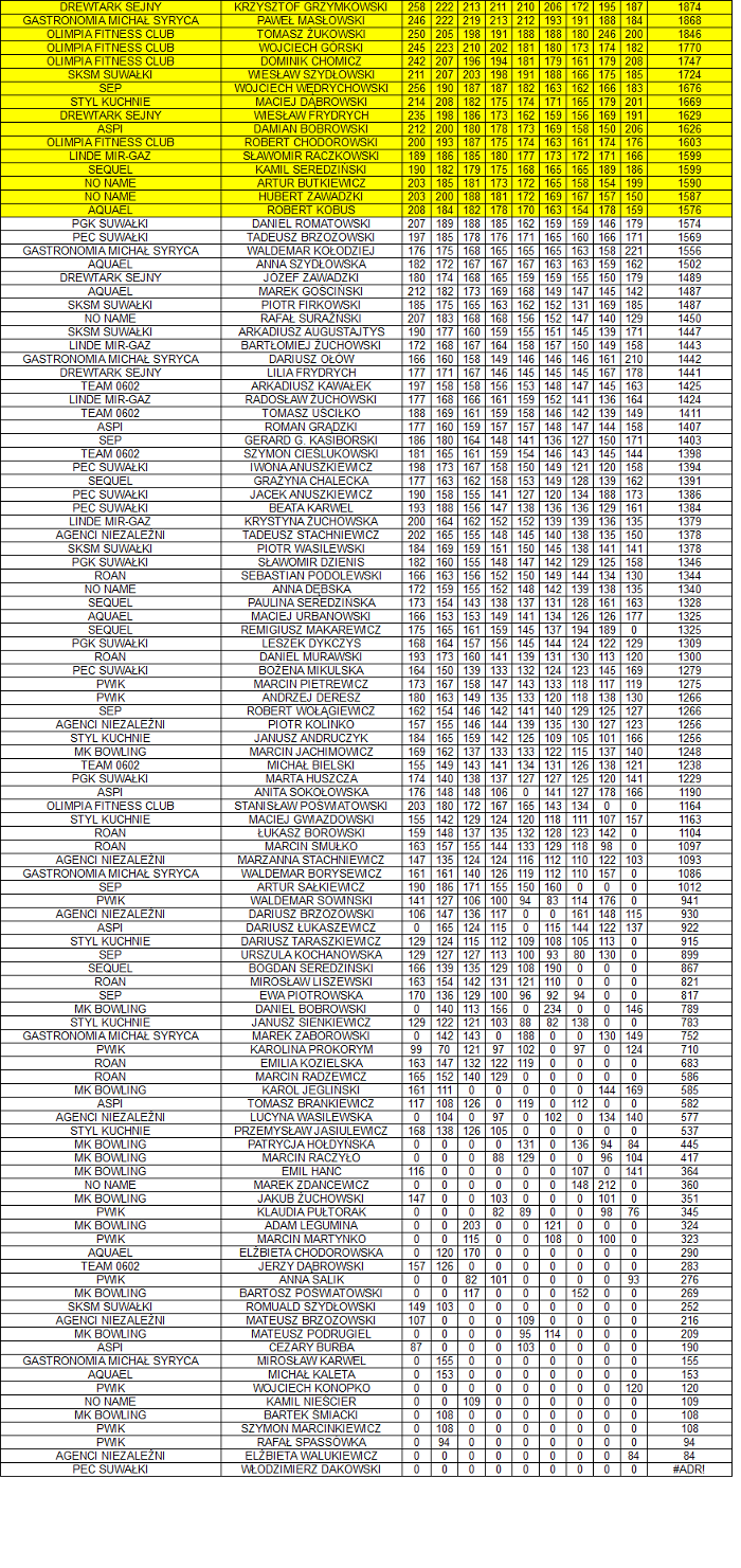 Wyniki indywidualne drużynami znajdziesz TUTAJ