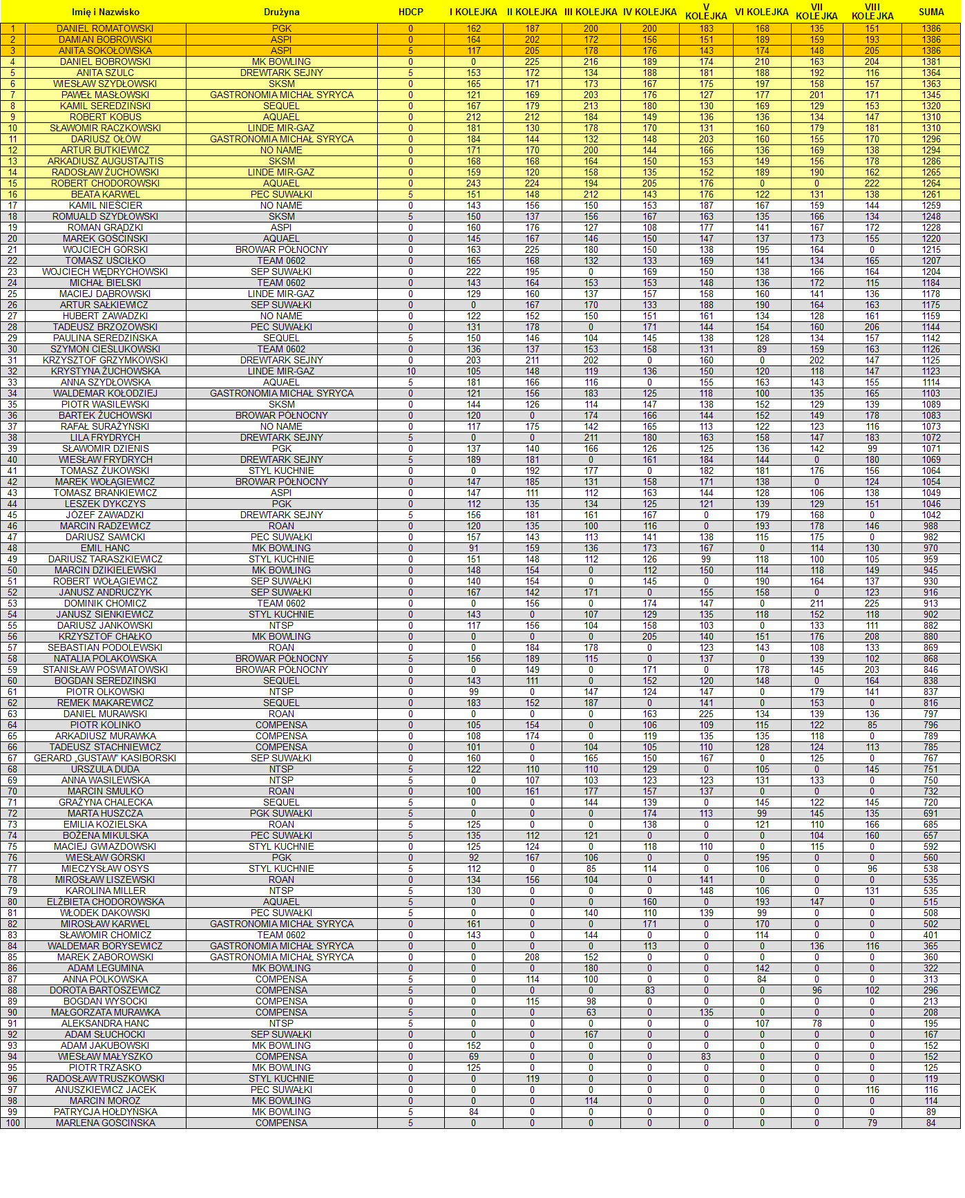 Wyniki indywidualne drużynami znajdziesz TUTAJ