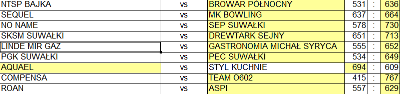W starciu reprezentacji dwóch miejskich spóÅ‚ek PEC wygraÅ‚ z PGK 649:534, a w najbardziej zaciÄ™tym spotkaniu gospodarze z Mk Bowling pokonali Sequel 664:637.