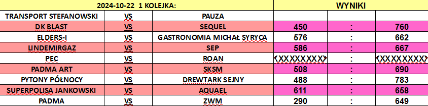 Wyniki 1. kolejki