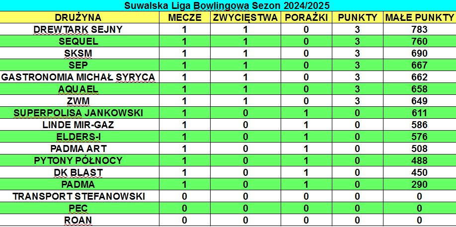 Siedemnaście zespołów, wśród nich cztery nowe, zainaugurowało 15. już edycję rozgrywek w kręgielni MK Bowling Suwałki. W lidze rywalizują drużyny złożone z reprezentantów firm z Suwałk i Sejn, z przyjaciół, rodzin i znajomych.