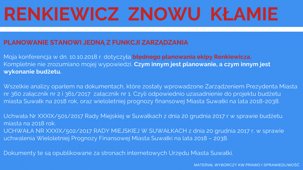 [15.10.2018] Czesław Renkiewicz, prezydent Suwałk:Grzegorz Mackiewicz kłamie w sprawie sytuacji finansowej miasta