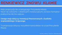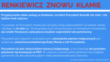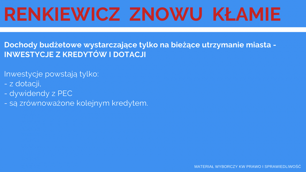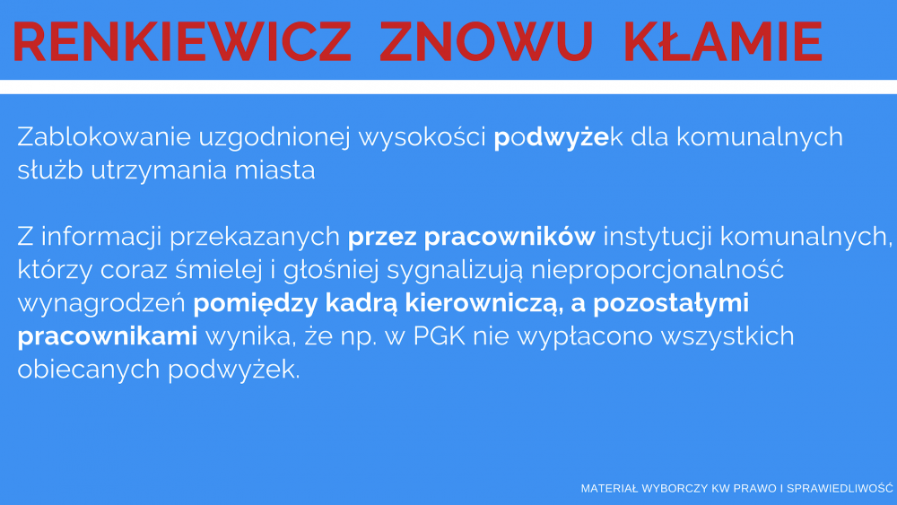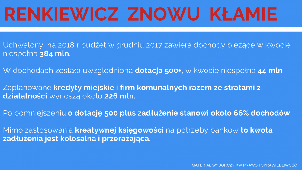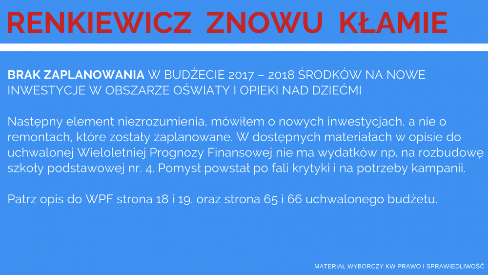 - CzekaÅ‚em na pozew w trybie wyborczym, ale w sÄ…dzie CzesÅ‚aw Renkiewicz musiaÅ‚by posÅ‚ugiwać siÄ™ dokumentami, a nie planszami, jakie pokazywaÅ‚ podczas swojej konferencji prasowej – mówiÅ‚ do dziennikarzy Grzegorz Mackiewicz. – Nie informacja typu prezentacja, proszÄ™ o dokumenty! Pytanie do Renkiewicza: kto kÅ‚amie?!