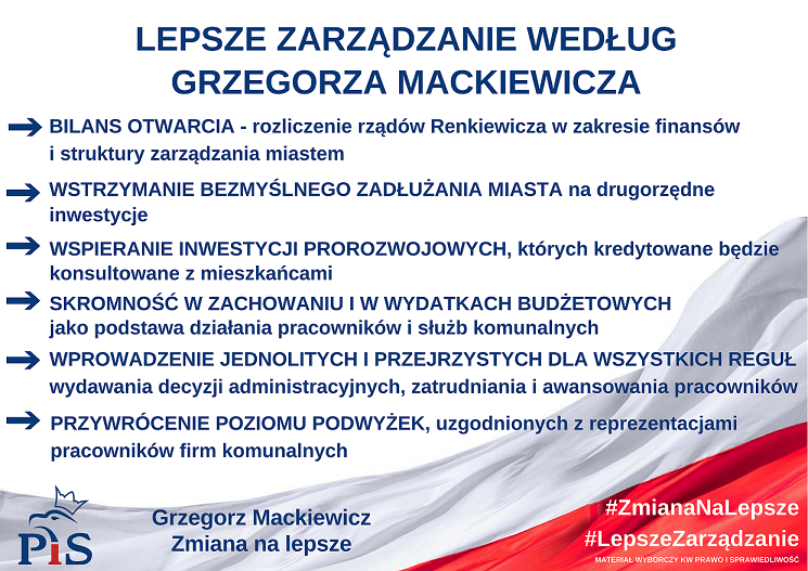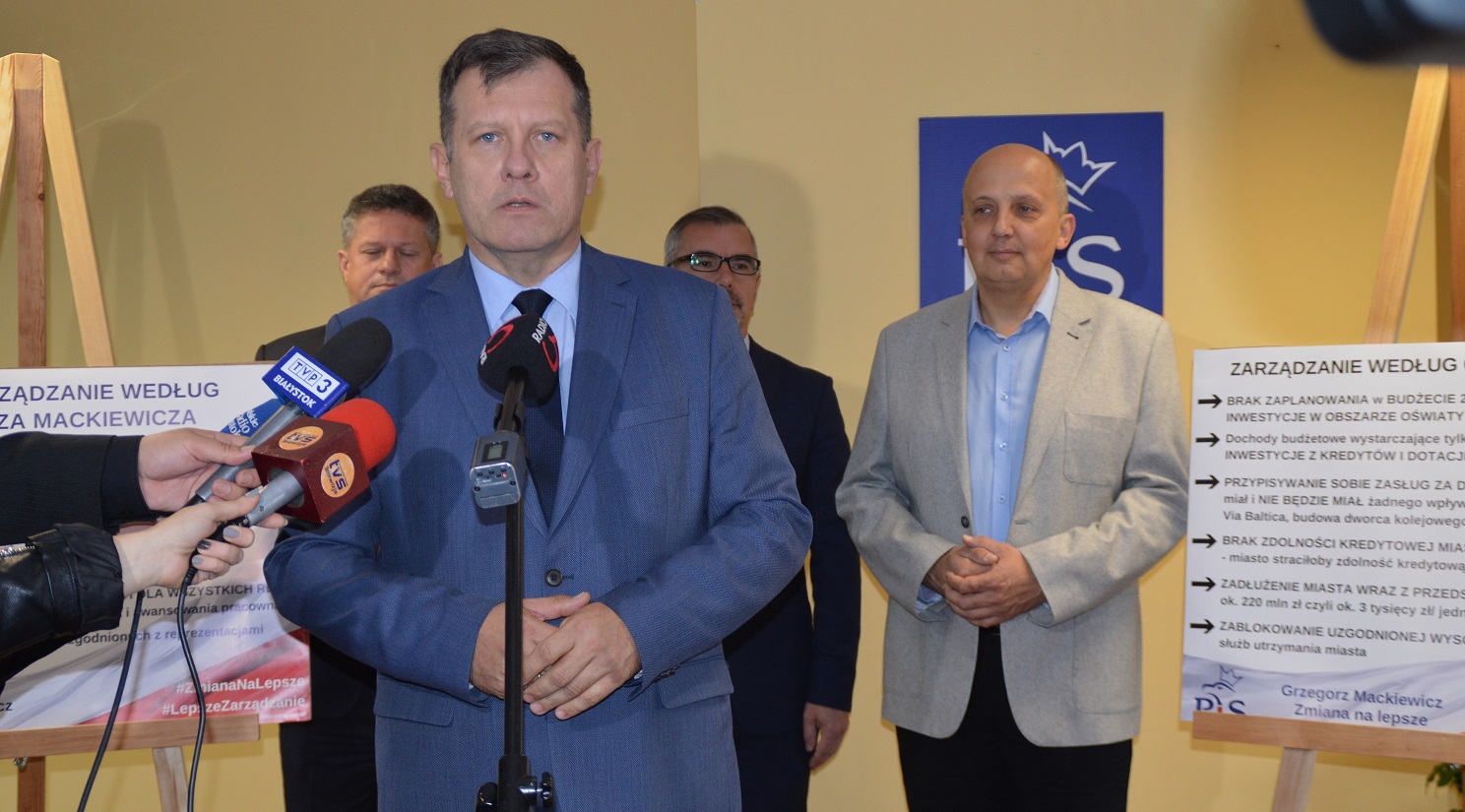Nikt nie będzie Was wyrzucał z pracy – zwrócił się do pracowników miejskich jednostek i spółek komunalnych Grzegorz Mackiewicz, kandydat Prawa i Sprawiedliwości, podczas swojej siódmej już konferencji prasowej.