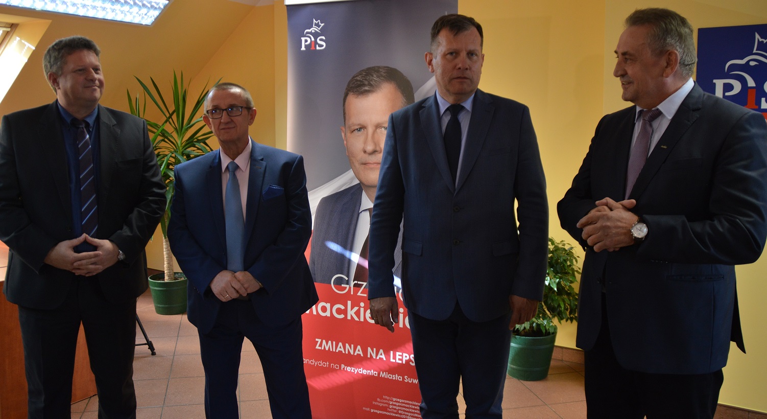 Gośćmi Grzegorza Mackiewicza, kandydata PiS na prezydenta Suwałk na przedwyborczej konferencji byli działacze NSZZ Solidarność - przewodniczący Zarządu Regionu Józef Mozolewski, szef suwalskiego oddziału Zdzisław Koncewicz oraz Bogdan Bezdziecki.