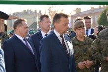 Szef MON razem z suwalskim posÅ‚em, wiceministrem JarosÅ‚awem ZieliÅ„skim i  kandydatem PiS na prezydenta SuwaÅ‚k, przewodniczÄ…cym Rady Powiatu Grzegorzem Mackiewiczem odwiedzili wszystkie stoiska na pikniku militarnym, a później wziÄ™li udziaÅ‚ w uroczystoÅ›ci pod Pomnikiem Å»oÅ‚nierzy WrzeÅ›nia. Dwaj ostatni dziÄ™kowali tam Mariuszowi BÅ‚aszczakowi za decyzje w sprawie puÅ‚ku. JarosÅ‚aw ZieliÅ„ski skrytykowaÅ‚ prezydenta SuwaÅ‚k CzesÅ‚awa Renkiewicza, który nie udostÄ™pniÅ‚ terenu w centrum miasta  na przeprowadzenie pikniku.