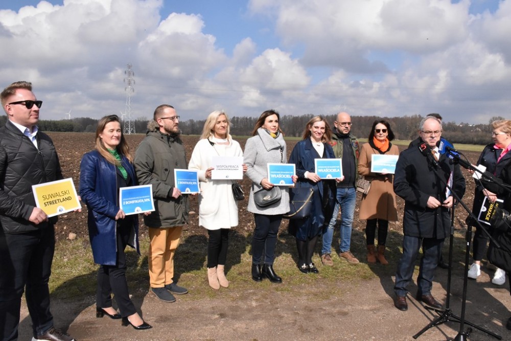 Przy ulicy Ogrodowej, gdzie niebawem na miejskim gruncie zostanie wytyczonych 66 działek budowlanych o powierzchni 650-1100 m kw., z dziennikarzami spotkali się kandydaci komitetu Razem dla Suwałk – Czesław Renkiewicz.