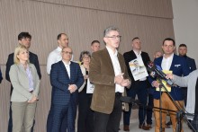 Wicemarszałek Senatu Maciej Żywno i posłanka na Sejm RP Barbara Okuła uczestniczyli w konferencji kandydatów Trzeciej Drogi Polski 2050 Szymona Hołowni do sejmiku, do rad powiatowej i miejskiej oraz na prezydenta Suwałk.