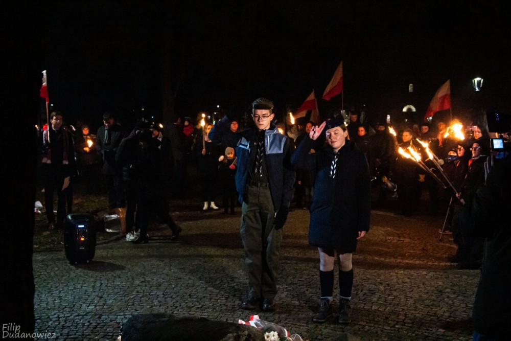 Zapalili znicze pod Pomnikiem Polskiej Organizacji Wojskowej.