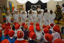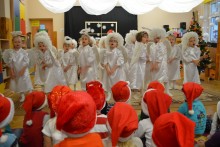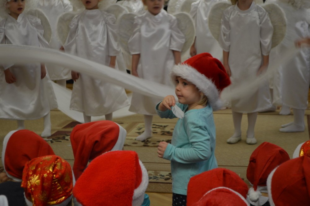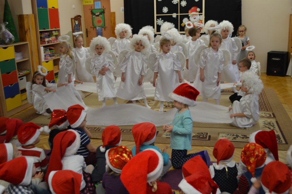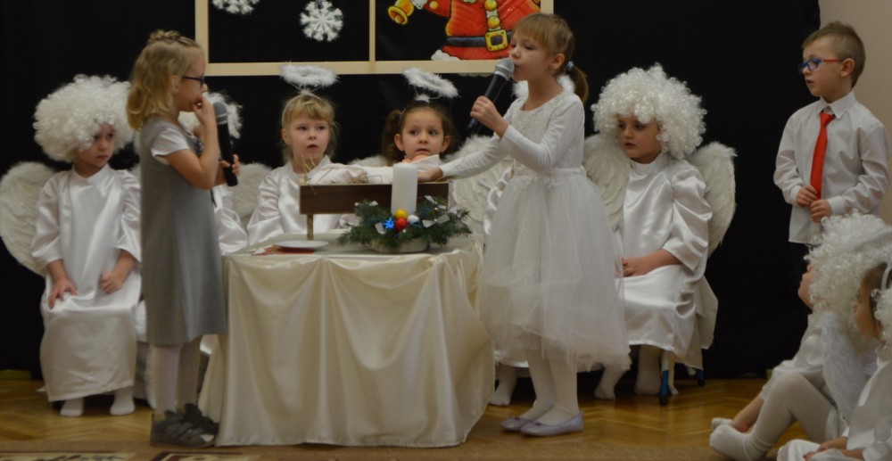 Przedszkolacy przedstawiÅ‚y w czwartek piÄ™kny i trudny program artystyczny. Nie zabrakÅ‚o wspólnego Å›piewania kolÄ™d i skÅ‚adania życzeÅ„. Teraz pozostaje jedynie czekać na pierwszÄ… gwiazdkÄ™ i MikoÅ‚aja.