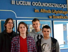 Drużynę „Zbuntowany Kaloryfer" tworzą Maciej Bednarek, Jakub Kowalewski i Robert Suchocki z klasy III A o profilu matematyczno-fizyczno-informatycznym, a w skład „Dzikich Kun" wchodzą: Szymon Jadeszko, Beata Masłowska i Daniel Zajkowski z II A. Oprócz dwóch suwalskich ekip, z całego województwa podlaskiego do dalszego etapu przeszły jeszcze cztery spośród 113 trzyosobowych zespołów ze szkół ponadgimnazjalnych, które zgłosiły swój udział.