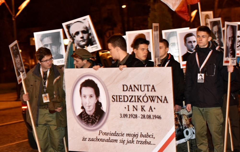 Patronem tegorocznego MÅ‚odzieżowego Marszu NiepodlegÅ‚oÅ›ci byÅ‚a Danuta Siedzikówna ps. ,,Inka" . Sanitariuszka 4. szwadronu odtworzonej na BiaÅ‚ostocczyźnie 5. WileÅ„skiej Brygady AK - jednego z najgroźniejszych i najskuteczniejszych oddziaÅ‚ów podziemia antykomunistycznego. PrzeszÅ‚a bardzo ciężkie i brutalne Å›ledztwo, w którym byÅ‚a bita i poniżana; mimo to odmówiÅ‚a skÅ‚adania zeznaÅ„ obciążajÄ…cych czÅ‚onków brygad wileÅ„skich AK.