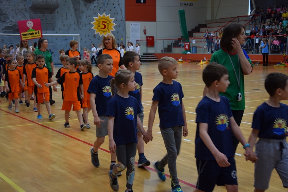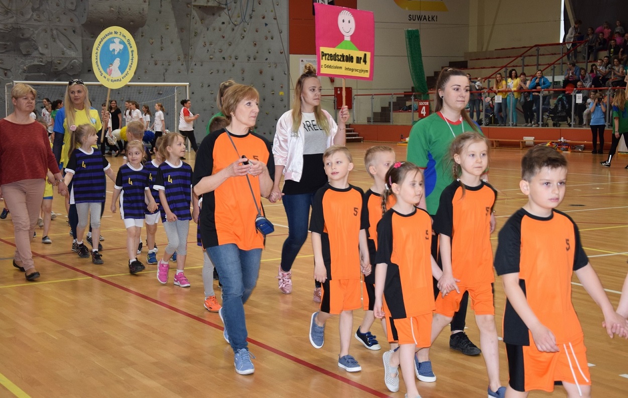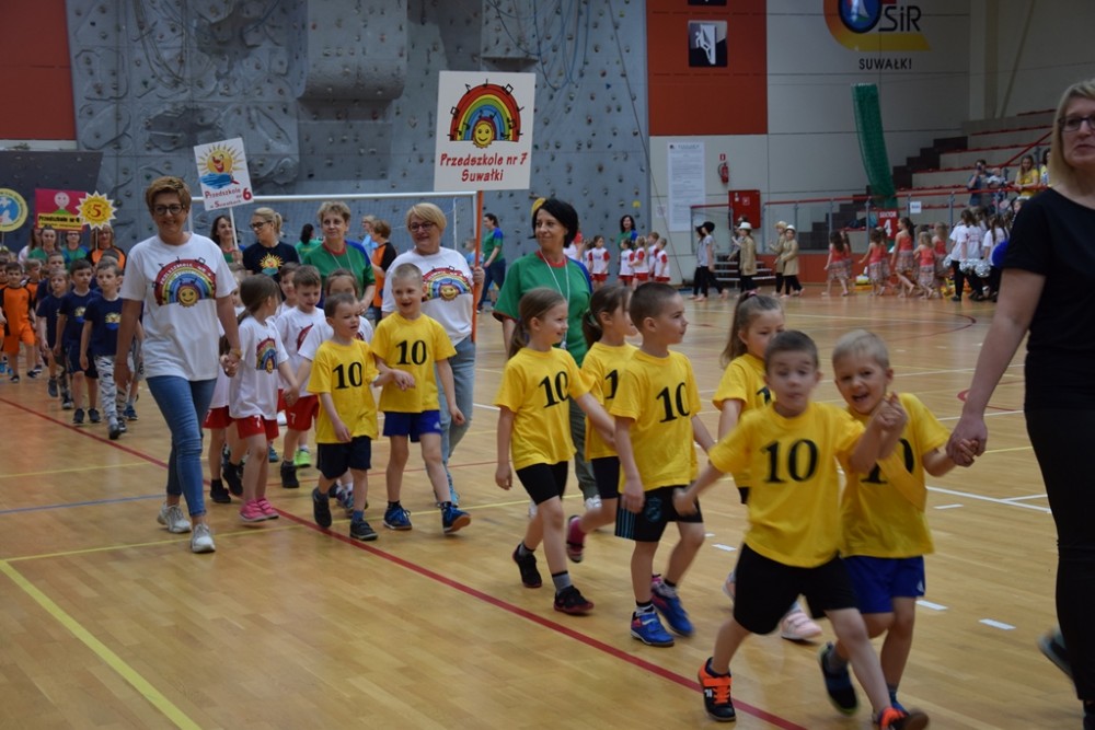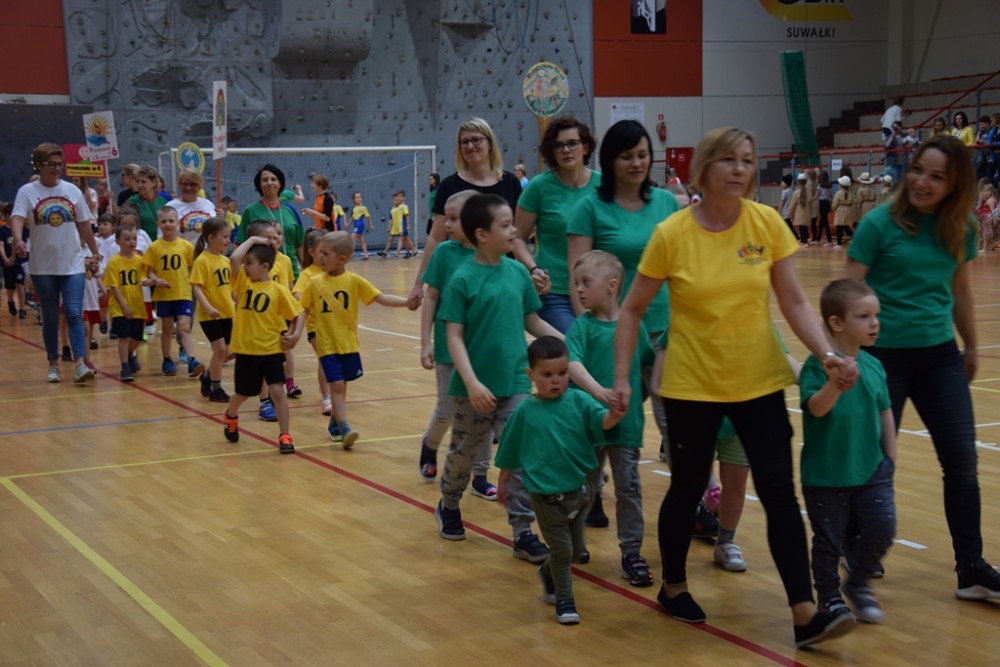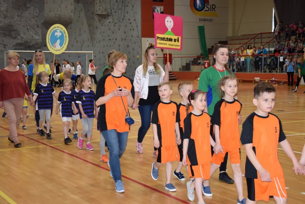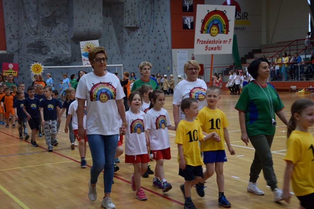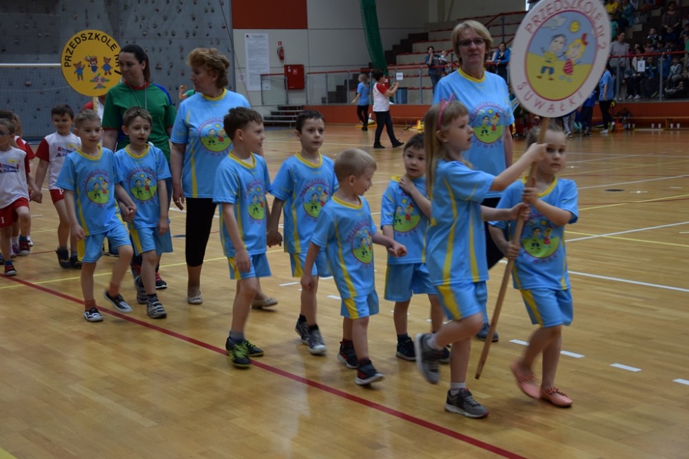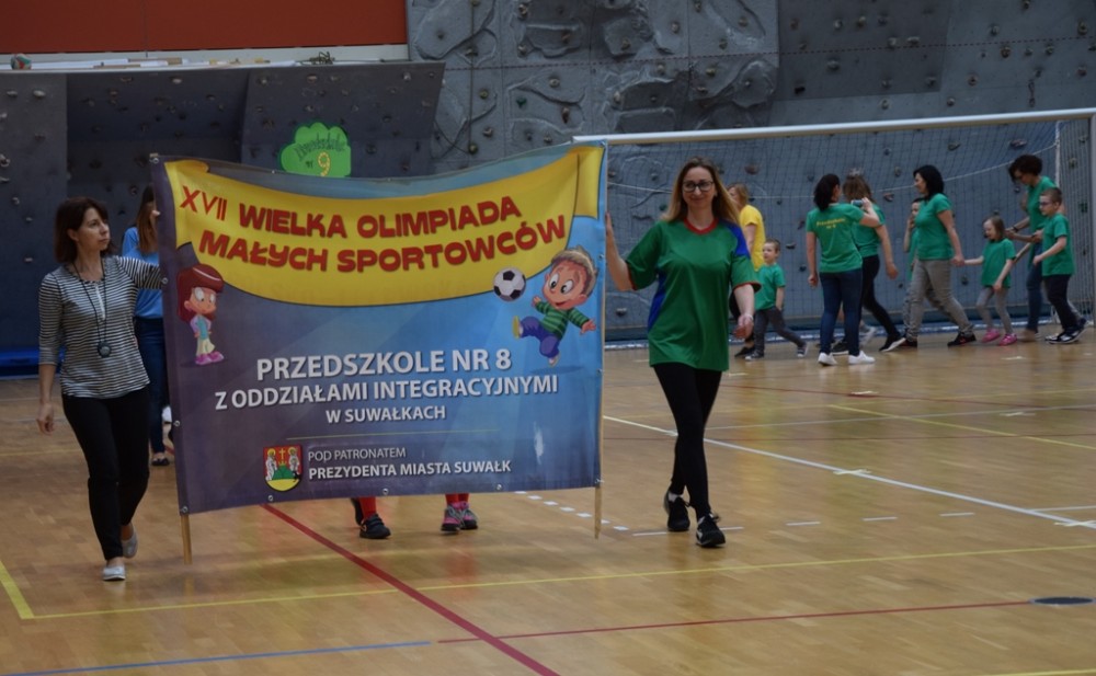Wymyślona i organizowana przez Przedszkole nr 8 z Oddziałami Integracyjnymi impreza odbywa się z iście olimpijskim ceremoniałem. W tym roku nie było zapalania znicza, ale jak zwykle dużym przeżyciem zarówno dla prawie 100 maluchów biorących udział w rywalizacji na parkiecie hali OSiR, jak i dopingujących ich z trybuny koleżanek i kolegów, rodziców i dziadków była defilada i wspólnie odśpiewany hymn Suwałk.