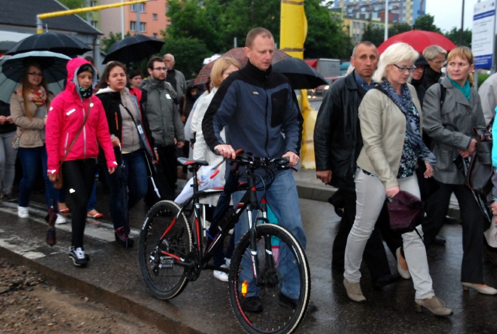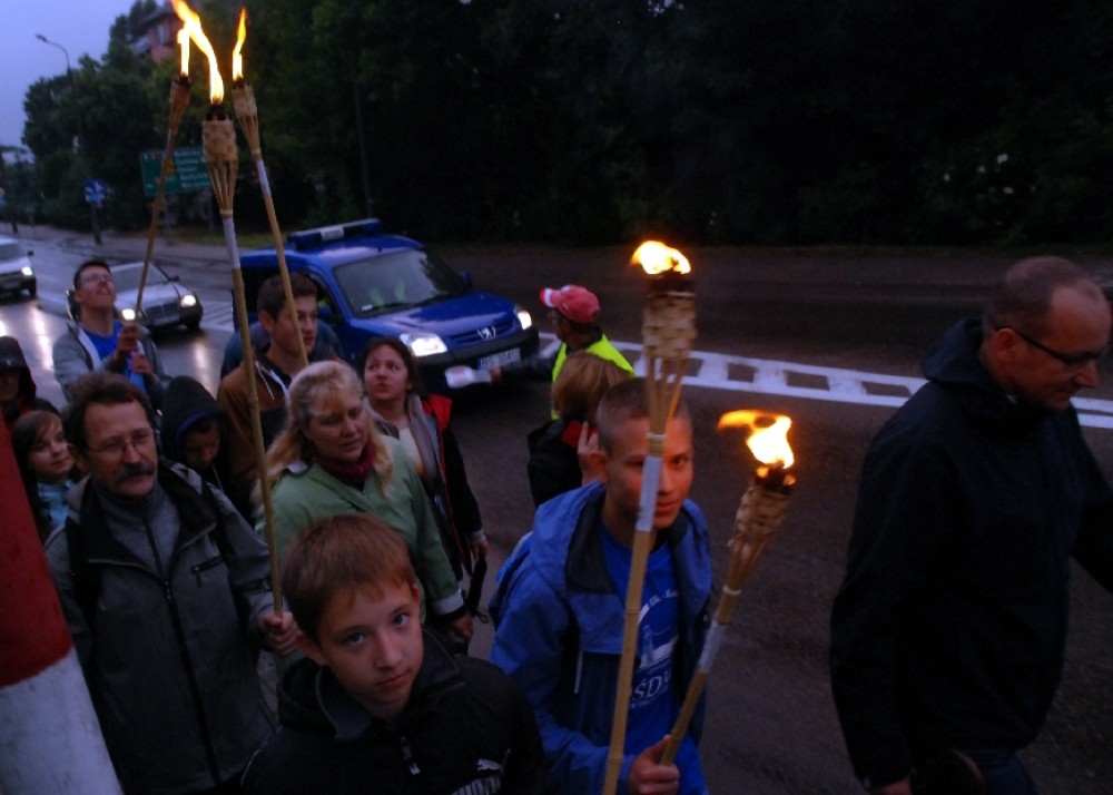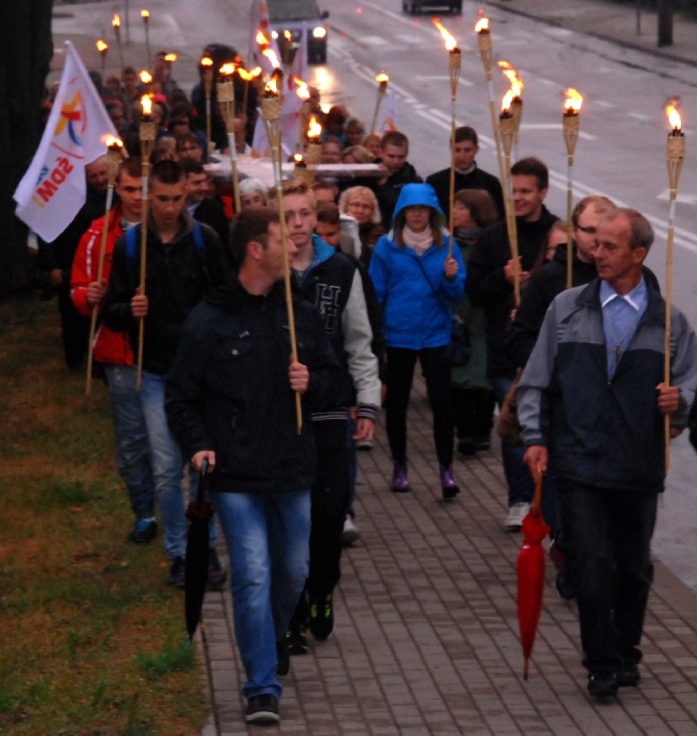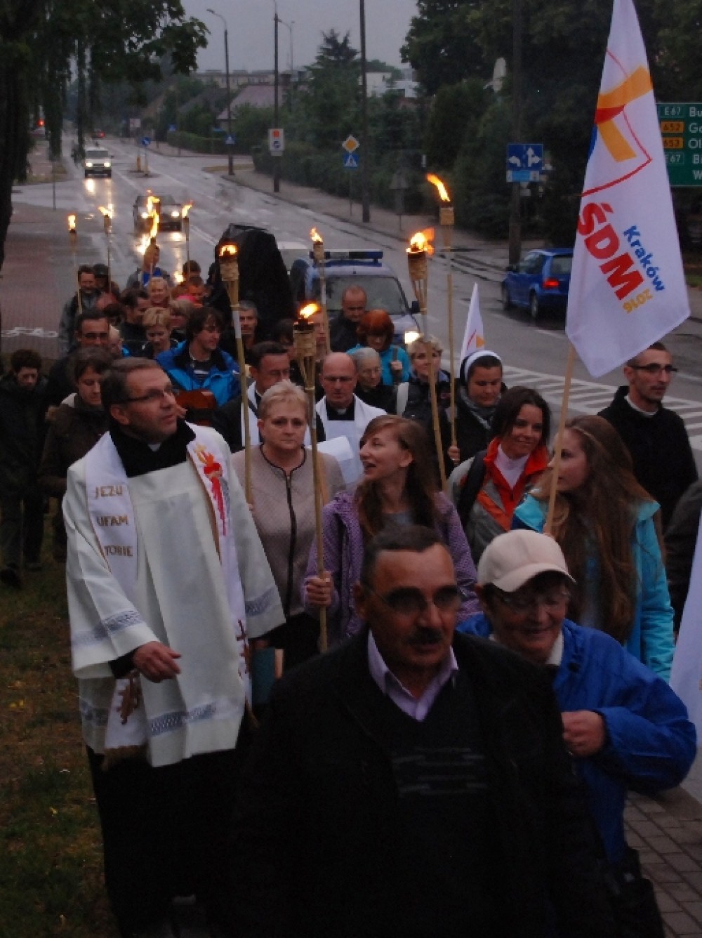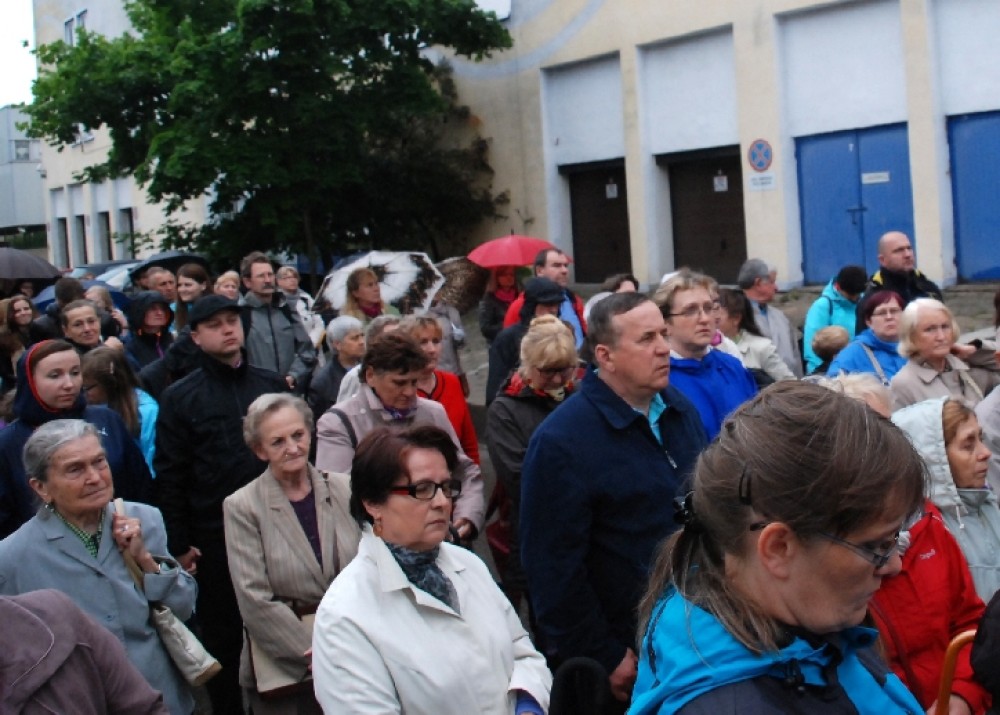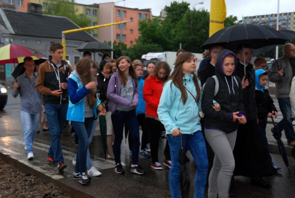 Pomimo zimna i padającego deszczu kilkaset osób przeszło w Drodze Krzyżowej z konkatedry do kościoła św. Wojciecha, skąd, po krótkiej modlitwie wyruszyli „Drogą Światła” do Starego Folwarku. Pierwszy dzień peregrynacji zakończyła pasterka w klasztorze w Wigrach.