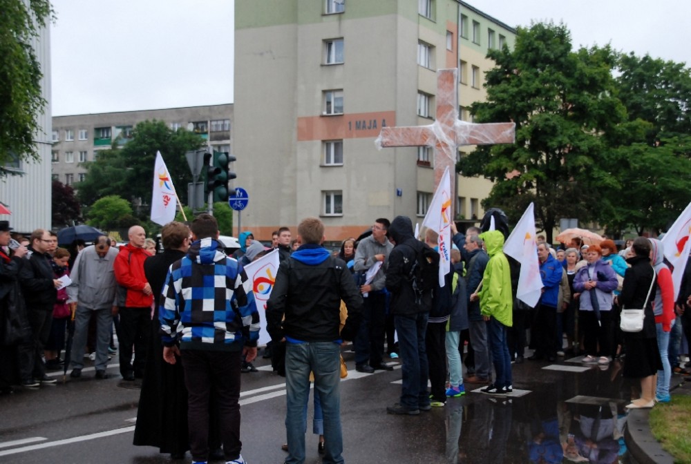 Wczesna, popołudniowa pora i padający deszcz sprawiły, że na spotkanie z Symbolami ŚDM przyszło zaledwie kilkaset osób, wśród których przeważała młodzież w wieku „60 +”. Niewielkim zainteresowaniem cieszył się koncert ewangelizacyjny w parku miejskim, przygotowany przez Suwalski Ośrodek Kultury. Znacznie więcej wiernych, również młodzieży, uczestniczyło we mszy, której w konkatedrze św. Aleksandra, przewodniczył bp Jerzy Mazur, ordynariusz Diecezji Ełckiej.