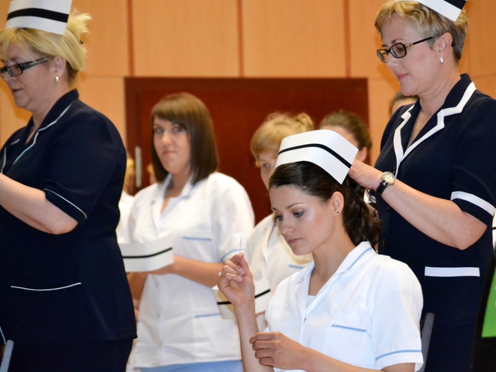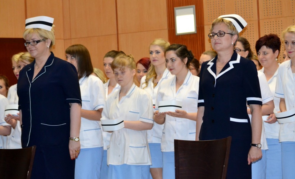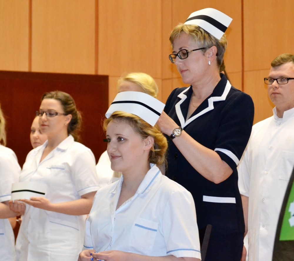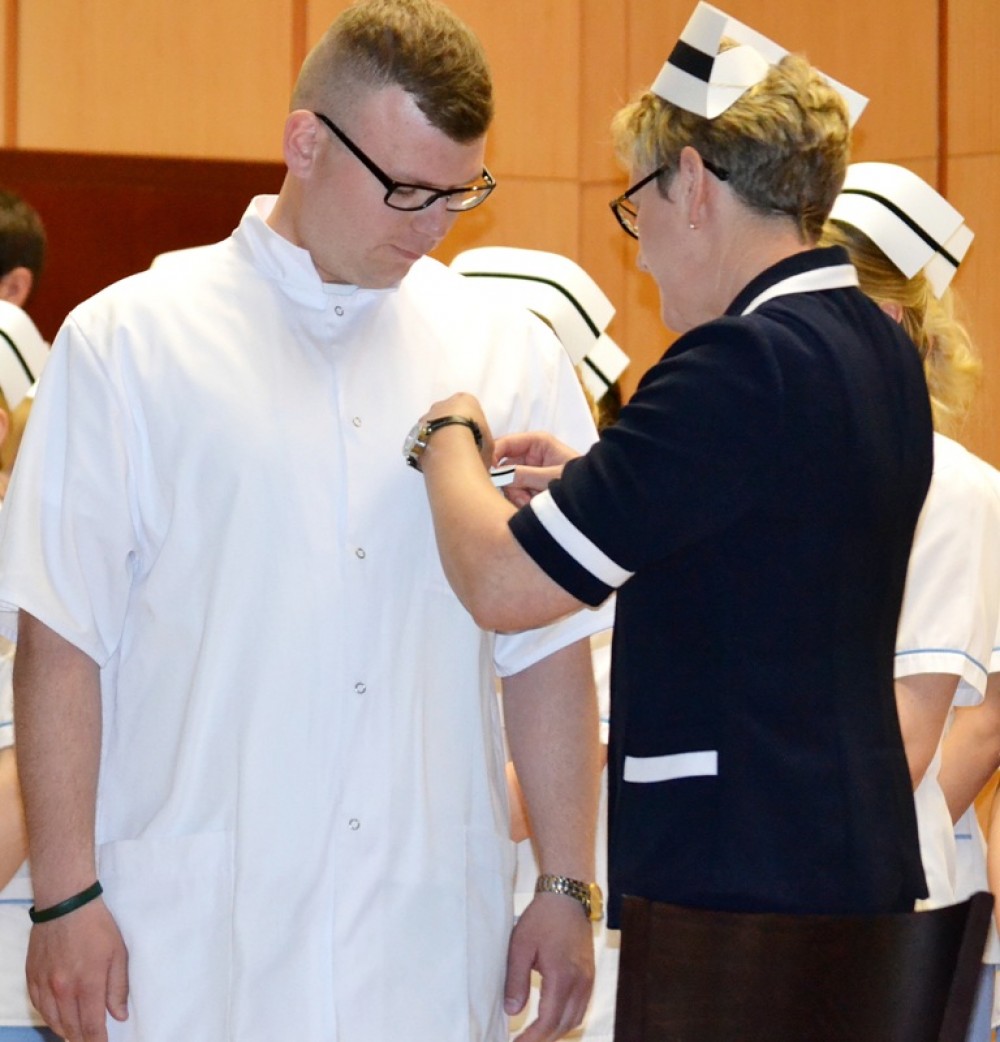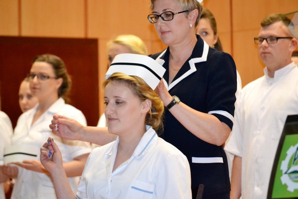 PrzyszÅ‚ym pielÄ™gniarkom zakÅ‚adano czepki, a pielÄ™gniarzom – przypinano broszki. WÅ›ród skÅ‚adajÄ…cych przyrzeczenie byÅ‚o 43 studentów, w tym dziewiÄ™ciu mężczyzn.