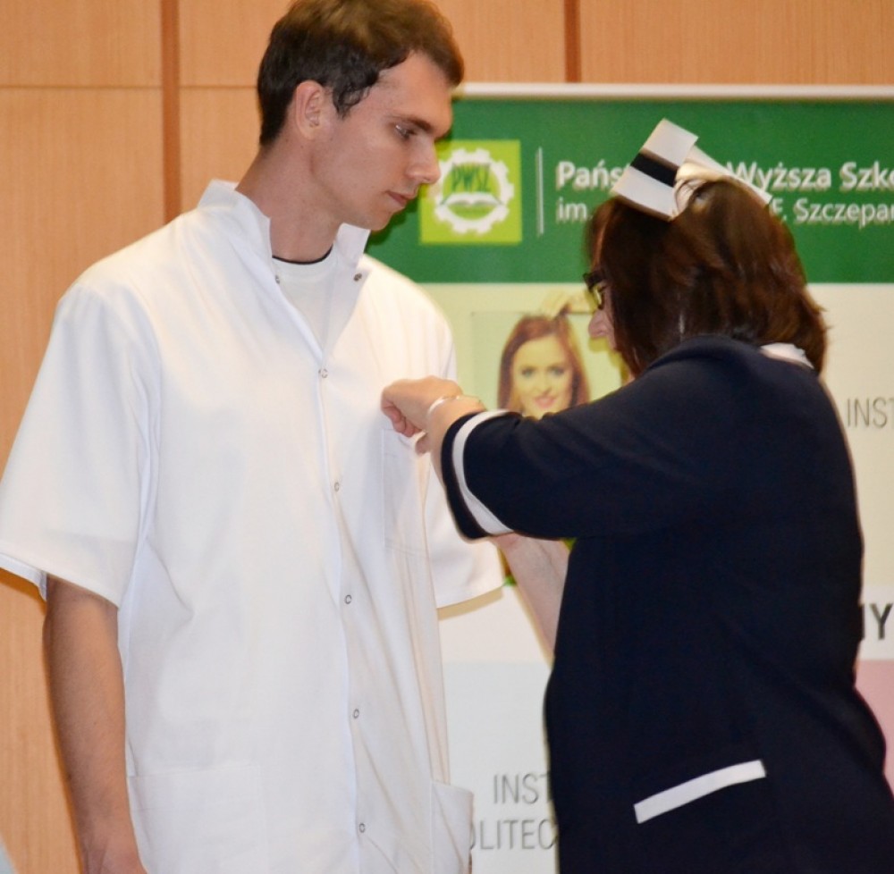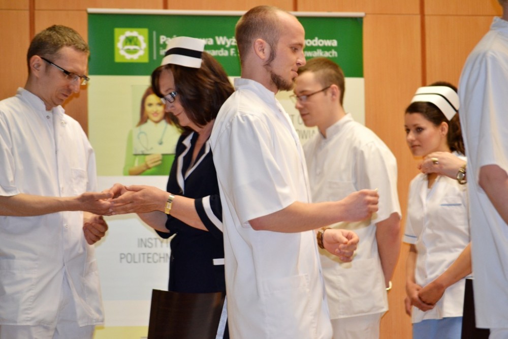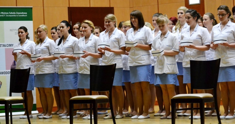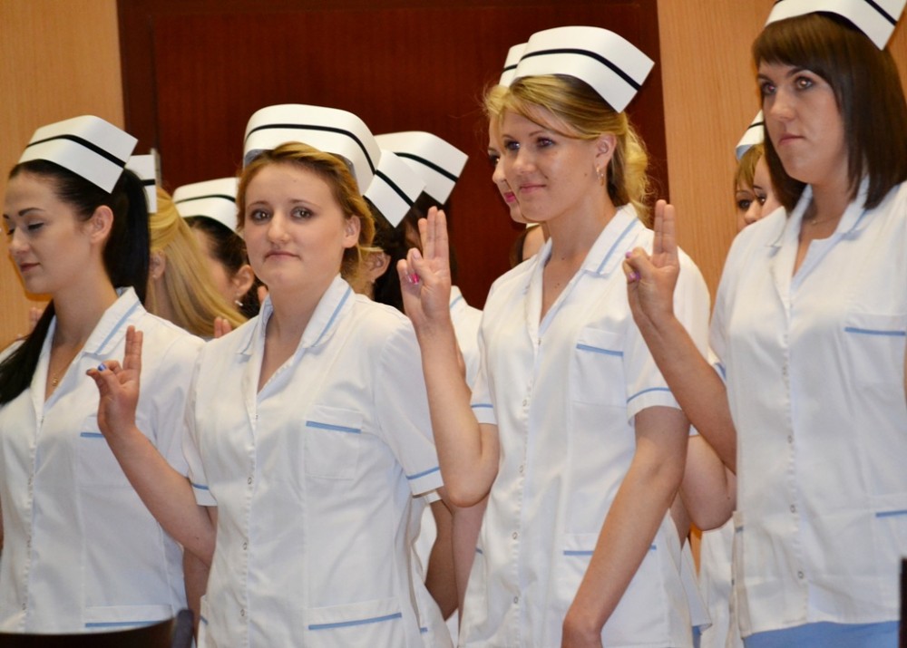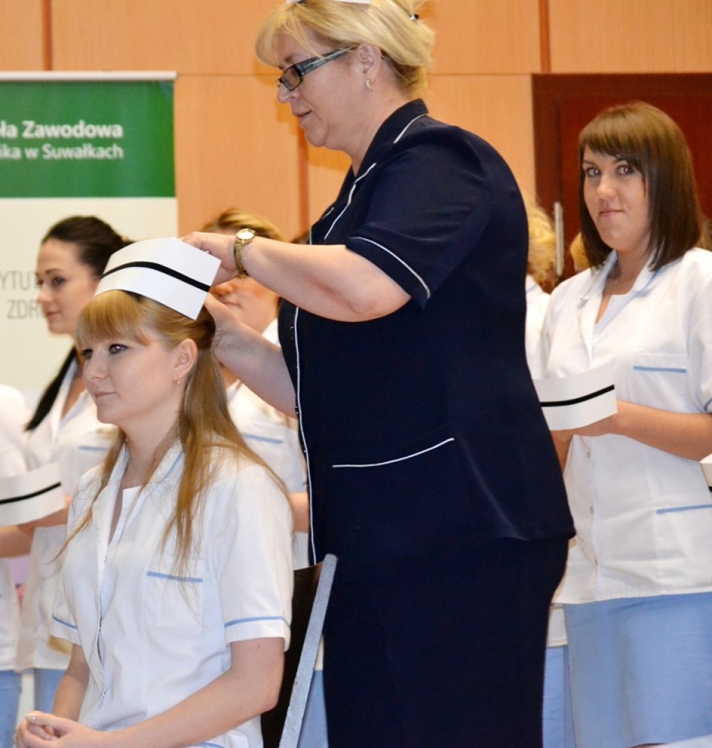 PrzyszÅ‚ym pielÄ™gniarkom zakÅ‚adano czepki, a pielÄ™gniarzom – przypinano broszki. WÅ›ród skÅ‚adajÄ…cych przyrzeczenie byÅ‚o 43 studentów, w tym dziewiÄ™ciu mężczyzn.