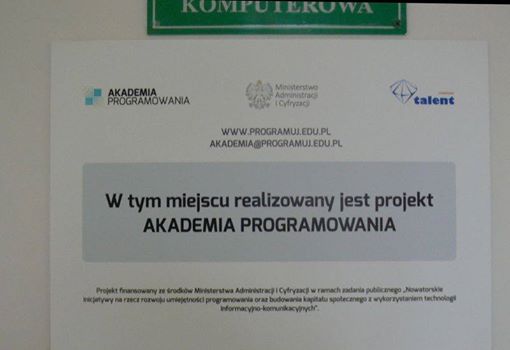 - Przez sześć sobotnich zajęć, w czasie czterech godzin lekcyjnych, grupa jedenastu uczniów wraz ze swoim nauczycielem informatyki braÅ‚a udziaÅ‚ w ogólnopolskim projekcie opracowanym przez Stowarzyszenie "TALENT", a realizowanym na zlecenie Ministerstwa Administracji i Cyfryzacji – informuje