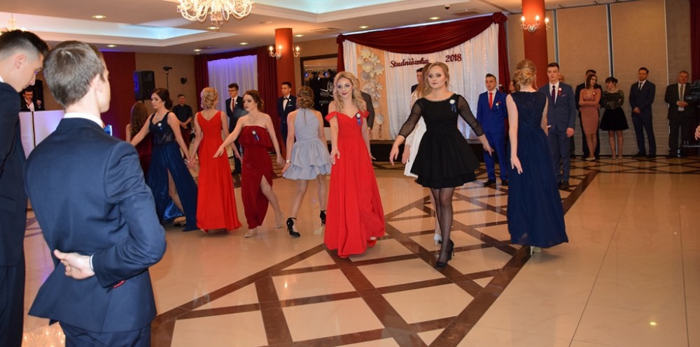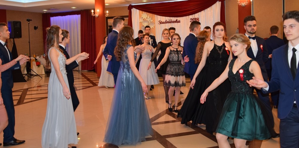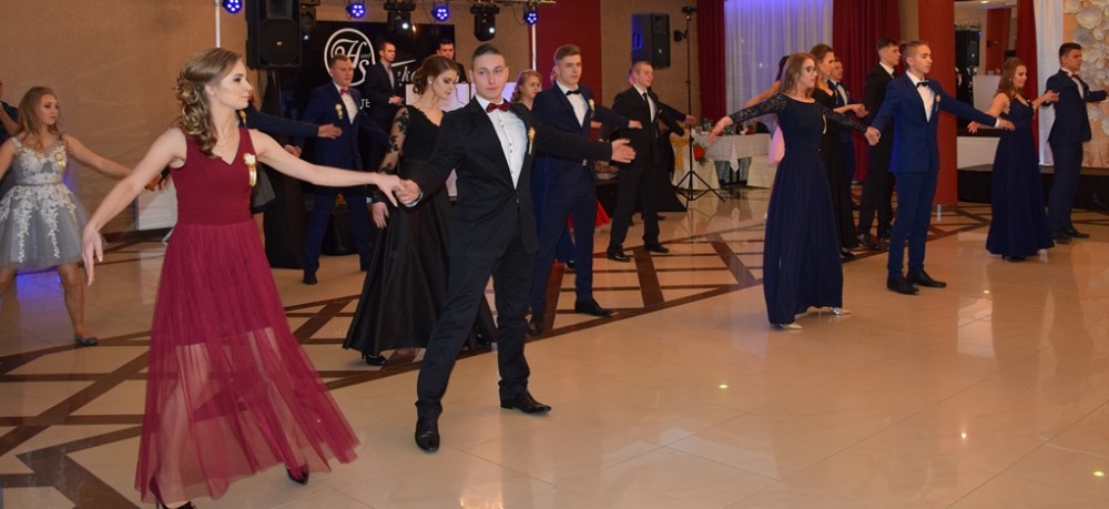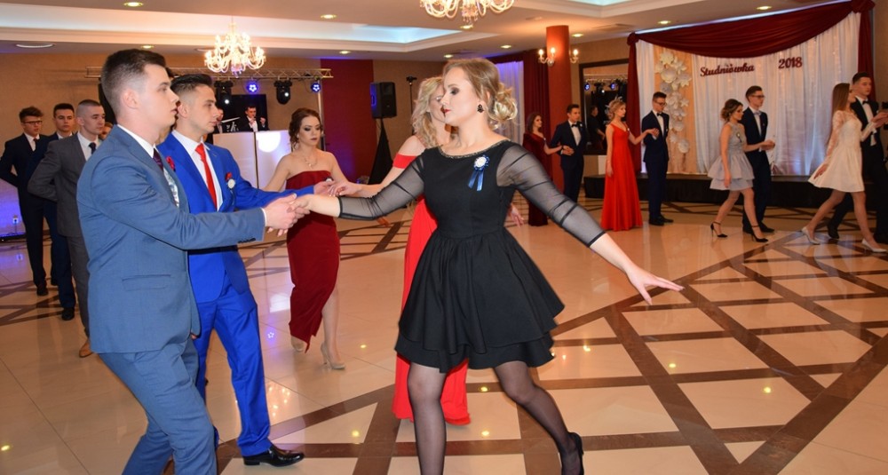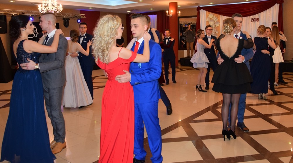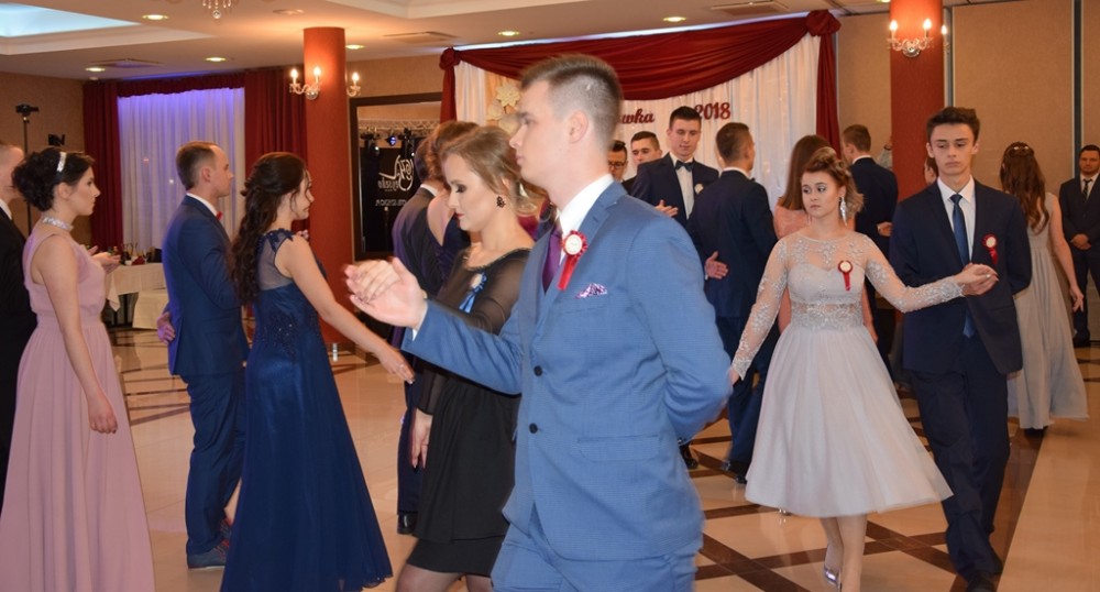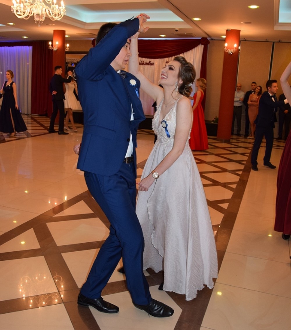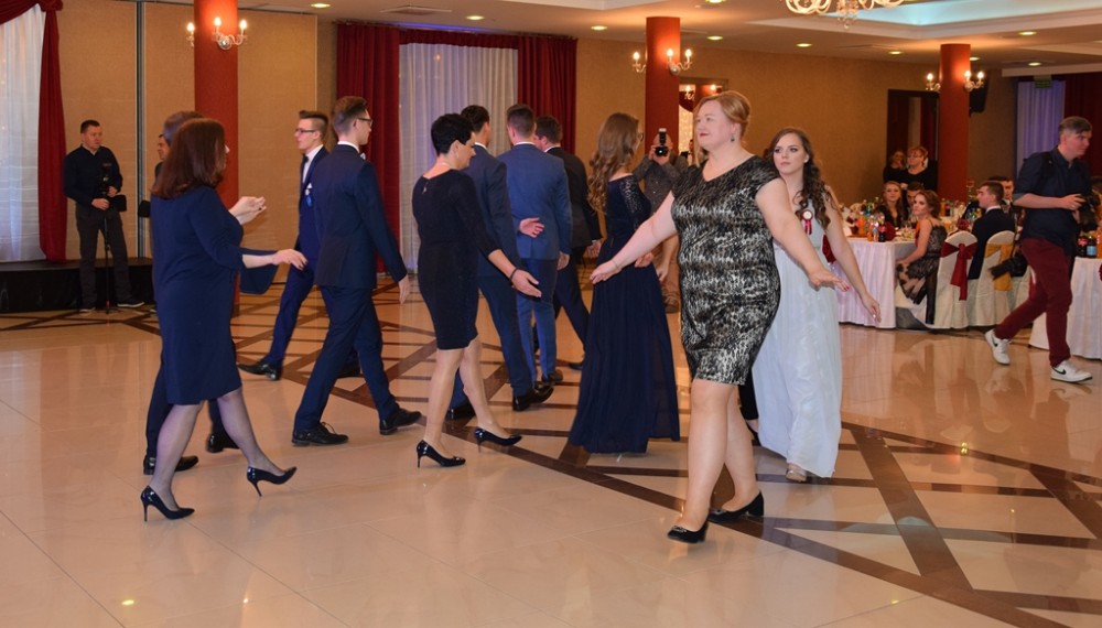 bawiÅ‚o siÄ™ prawie 60 maturzystów. Dyrektor Dorota Koncewicz życzyÅ‚a im, by także przez egzamin dojrzaÅ‚oÅ›ci przeszli tanecznym krokiem.