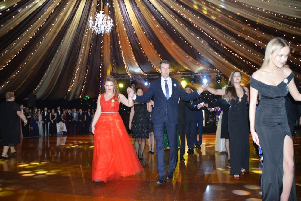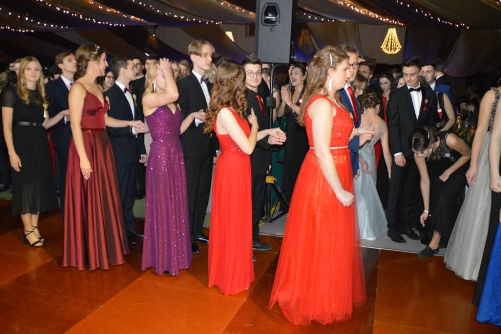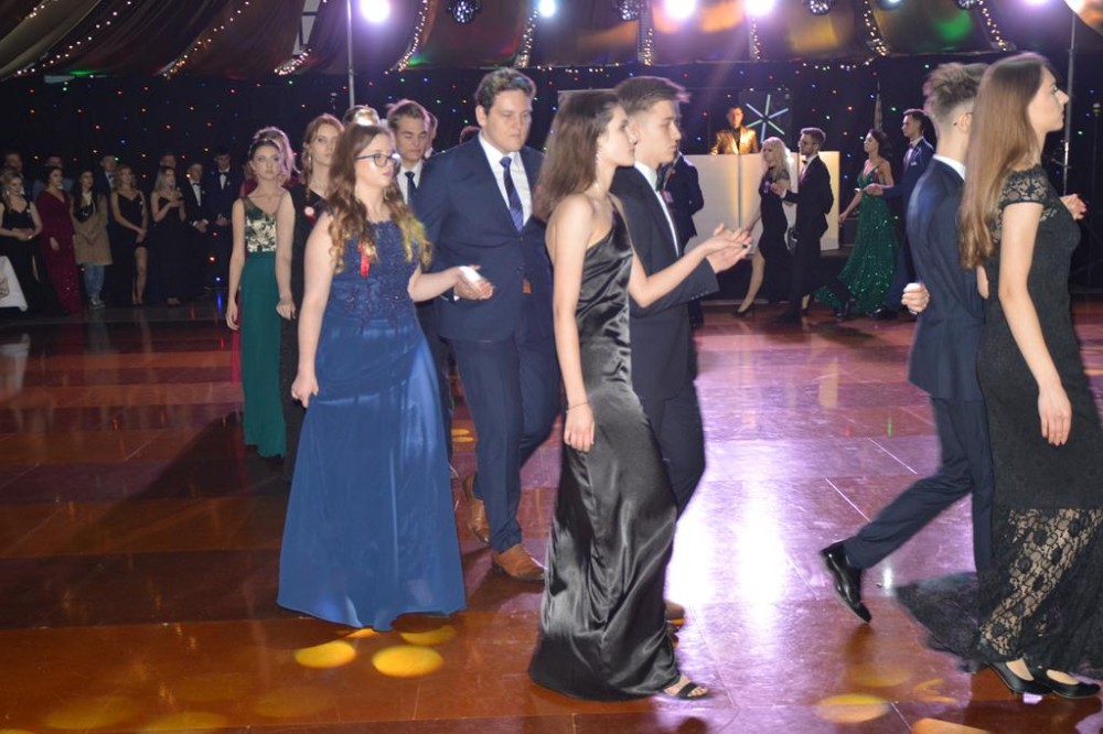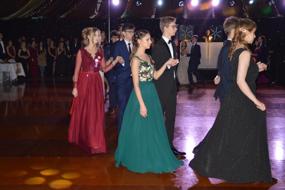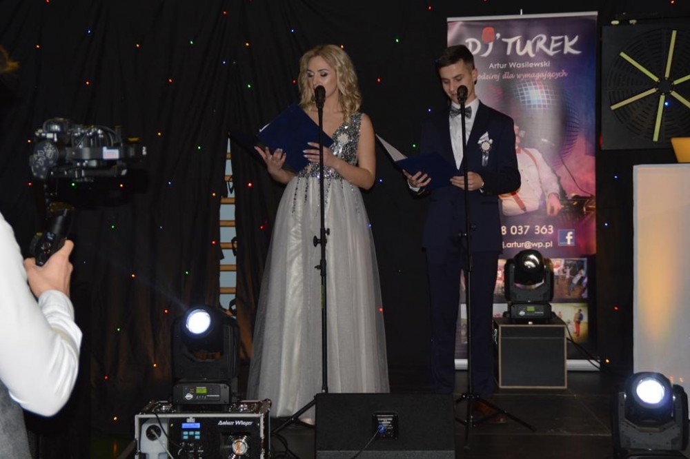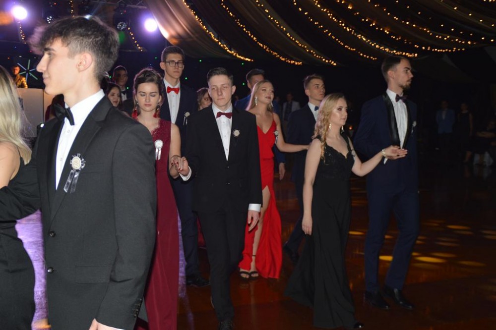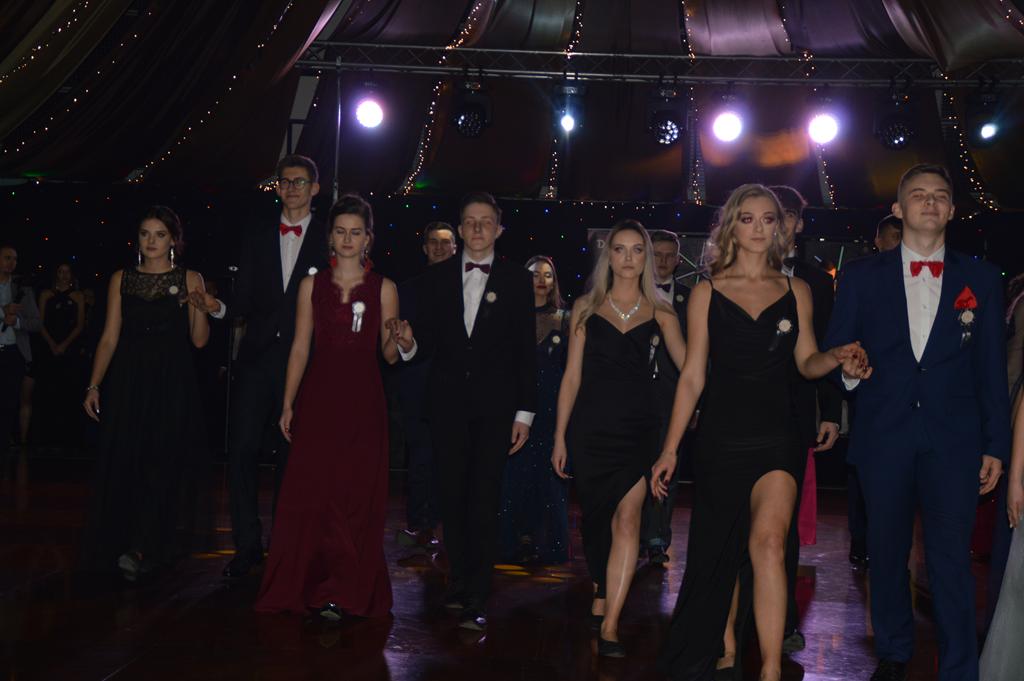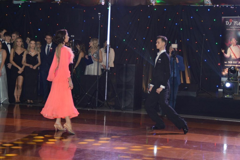 Uczniów, ich goÅ›ci, rodziców i nauczycieli przywitaÅ‚a dyrektor szkoÅ‚y Dorota JabÅ‚oÅ„ska, nastÄ™pnie uczniowie zataÅ„czyli poloneza – najpierw z nauczycielami, potem wspólnie. Każda z klas zataÅ„czyÅ‚a również wÅ‚asny ukÅ‚ad, a jedna z uczennic dodatkowo zaprezentowaÅ‚a ze swoim partnerem profesjonalny taniec towarzyski.