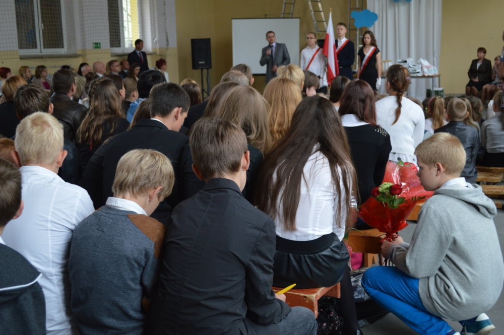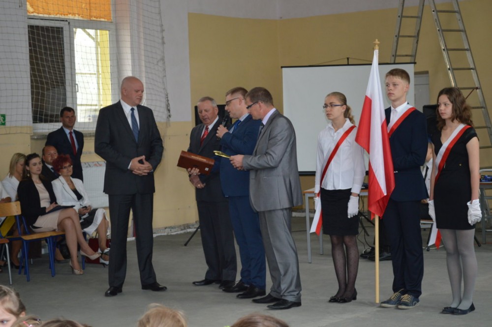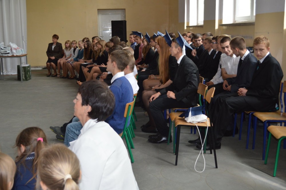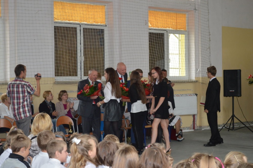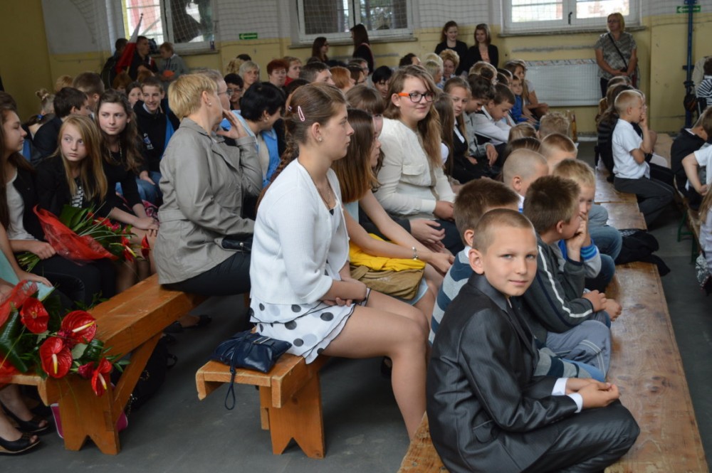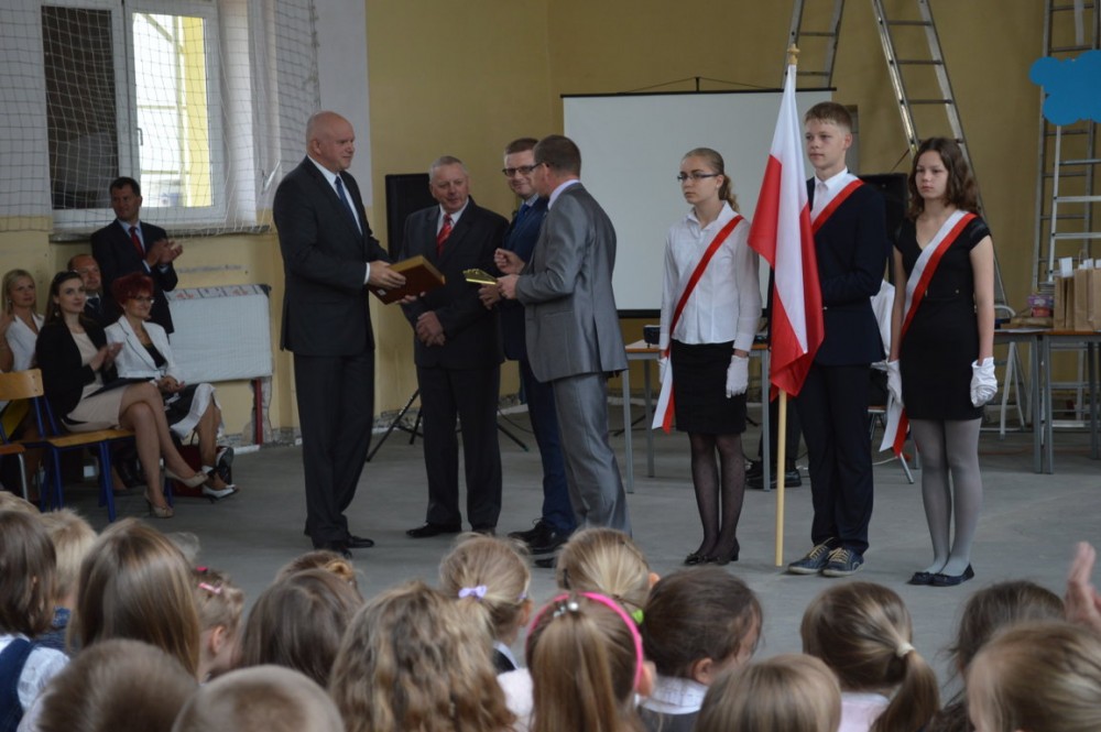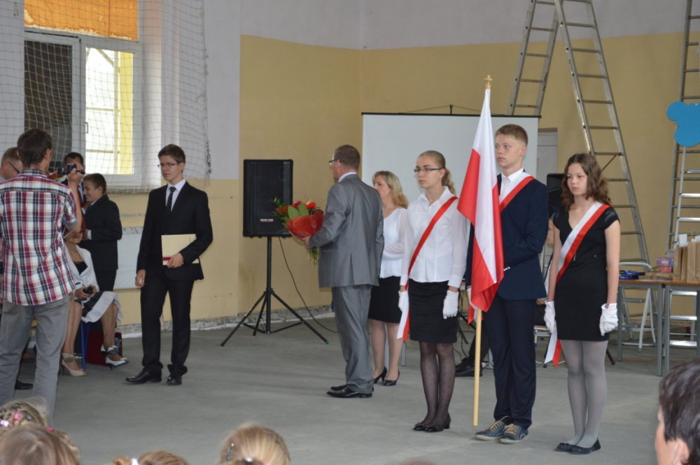 Podczas akademii dyrekcja i nauczyciele pożegnali uczniów klas szóstych szkoły podstawowej oraz trzeciej klasy gimnazjum.